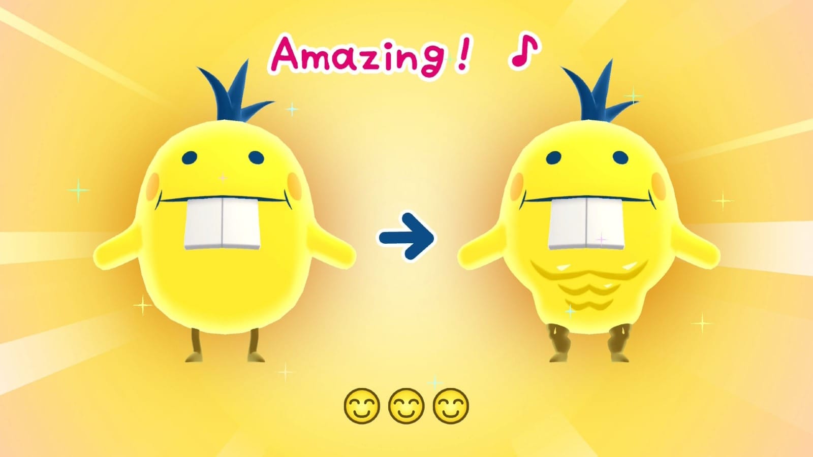 There are about a dozen different shops in Tamahiko Town, including a dentist’s office, eye glasses store, a fitness center, and even a rap battle venue. You visit the different shops and assist the shop owner with fulfilling customer requests, each shop having its own minigame required to complete the objective. Help Mametchi get stronger legs by running on the treadmill (because that’s definitely how it works), clean up Furawatchi’s teeth by filling cavities, and draw up a manga about Debatchi’s food shop. Between shifts at each shop, you can take a stroll around town to socialize, pick up trash, and upgrade features in the town center.