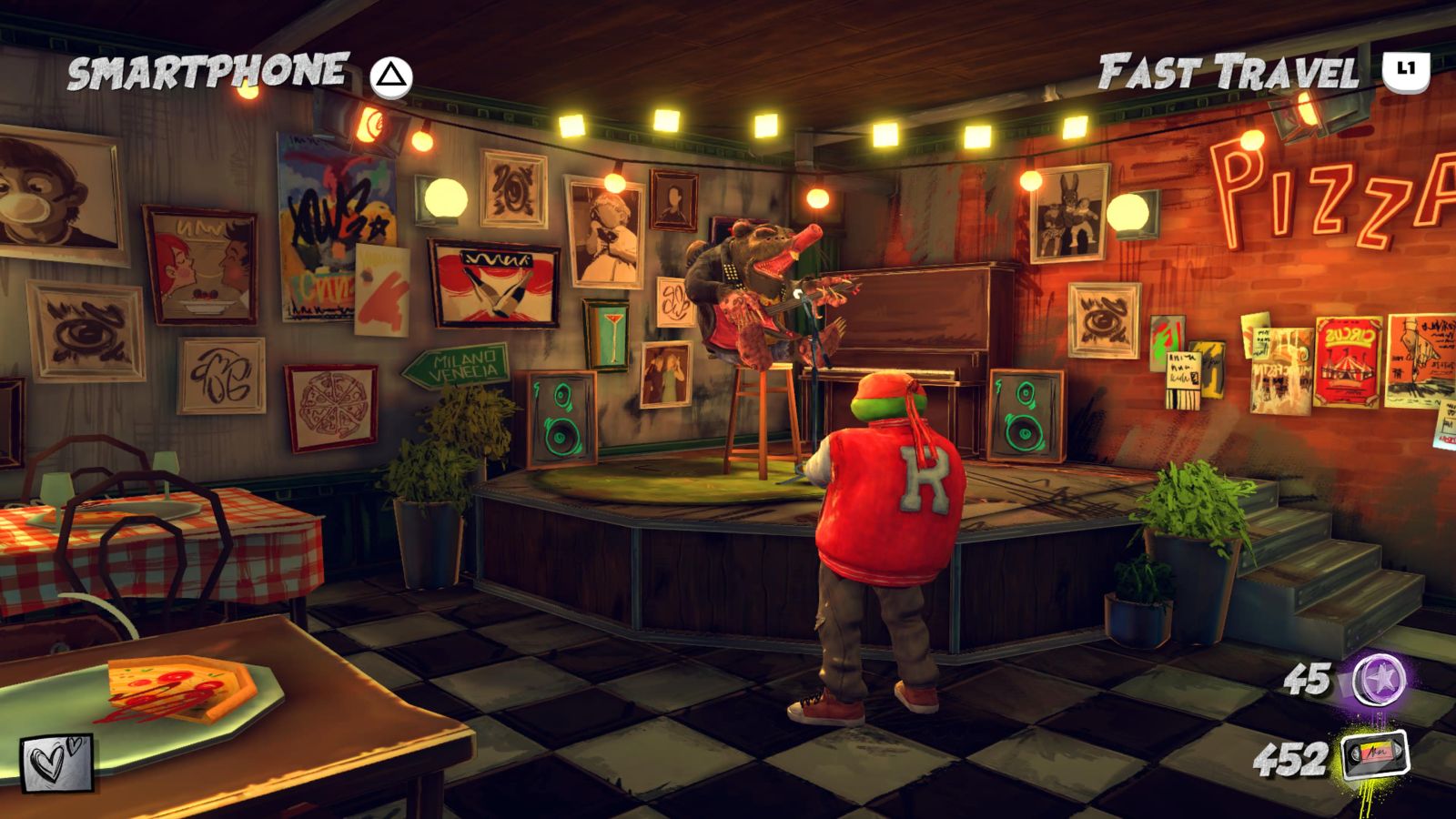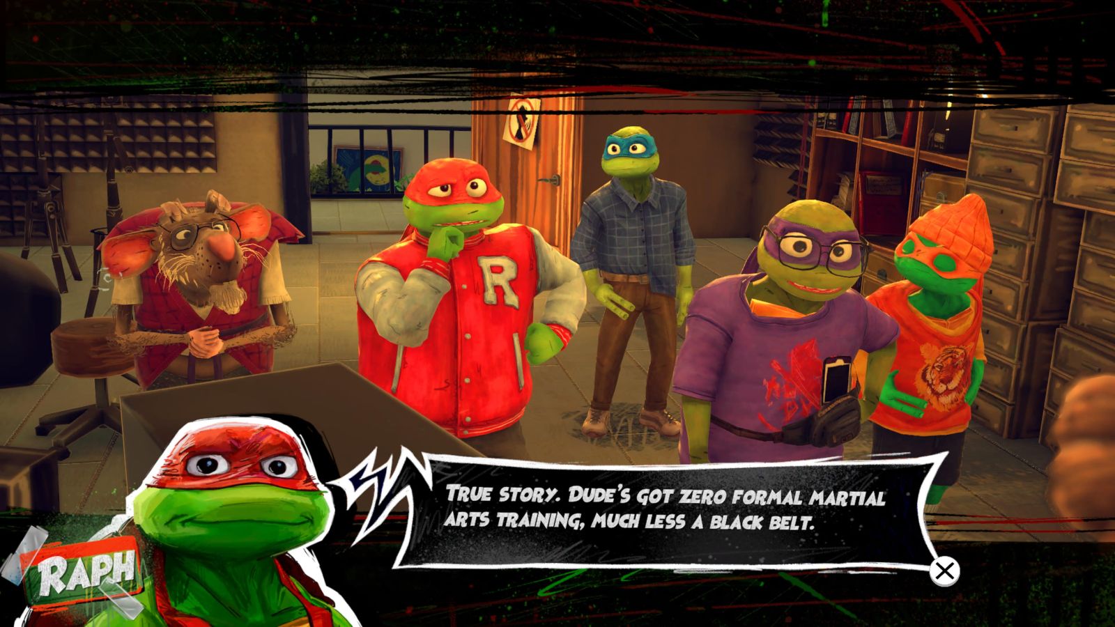 All said, there is quite a bit of game here, totaling nearly 15 hours for a first playthrough. This includes the main missions, ally bonds to fully flesh out, canisters to find that can upgrade damage, health, and your brother assist charges, tokens that unlock fortunes which then serve as bonuses during missions, civilian missions, contagion missions, pizza delivery missions, a photo app, a digimutants app which allows you to scan mutants and learn more about them, a wide variety of abilities to unlock for each turtle, and art pieces scattered throughout which you can snap a picture of to learn about from Mondo. Aside from skill unlocks I didn’t find myself too terribly thrilled with uncovering any of these items, but I am always happy when a game adds collectibles in to entice players to explore or replay.