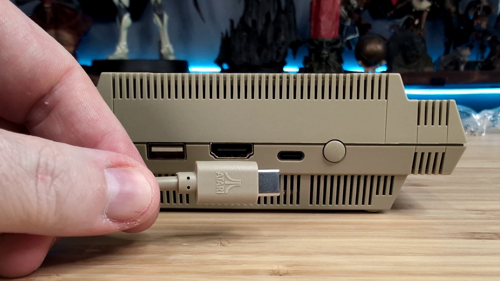 If you remember when you once had to place two tiny little forks on a pair of screws to add a sliding TV adapter into the mix for your Atari, you’ll be happy to know that the 400 mini opts for a simple HDMI output to a modern television. The whole device is powered with a 5V 1A USB-C cable, so it’ll practically run off a trickle charger. Both of the cables are the same Atari brown as the console itself, and both are branded with the Atari logo.