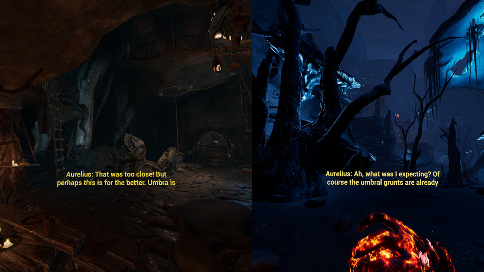 I won’t lie, I didn’t play the first title in the series. Though, I have heard great things about it. As was the previous game it’s set in the fantasy land of Meliora. However this time a dark force has fallen over the realm, known as the Umbra, and the inhabitants have turned into aggressive, hateful beings. Overall, the story is interesting and feels like a bit of a dungeon and dragons adventure. Though you don’t have a party to fight alongside you, you do have your friend Aurelius who narrates inside your head(set) and provides a lighthearted take on a world that’s otherwise dark and hateful. I will say now that Aurelius is one of my favorite things about this game. I have to give props to his voice actor, Jason Marnocha, for making him so entertaining that I’m not sure what the game would’ve felt like without him.