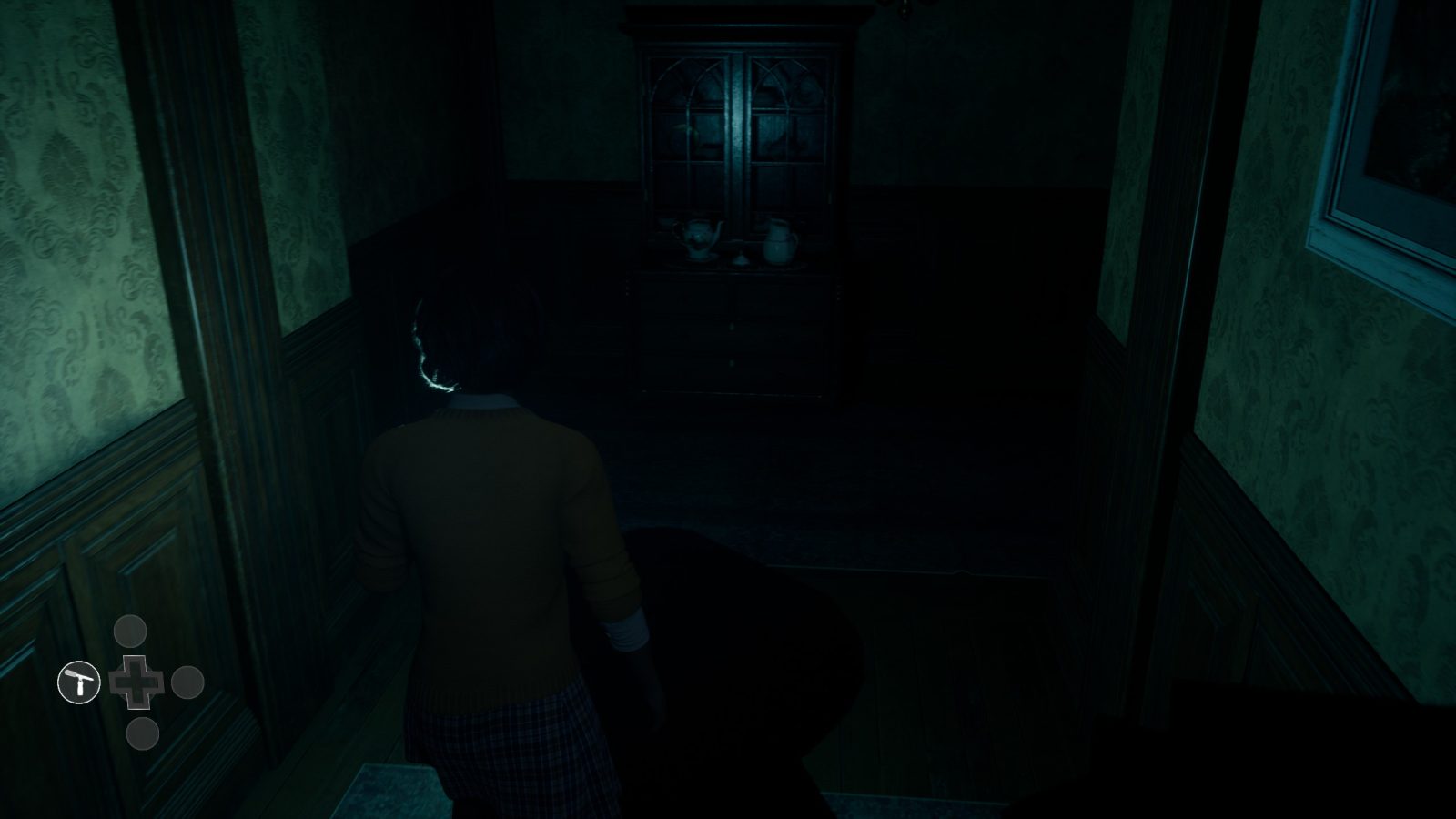 Erin’s main tool is her directional microphone, which you can use to follow sounds in the distance. Initially, you hear someone crying and go to investigate. As you focus more on the sound than where you’re going, you’ll quickly get turned around in the hotel’s corridors until, wait, this was a dead end before. There wasn’t a wall there last time. Now the crying has turned to a child’s scream and… voices you recognize from earlier that evening. Then the lights go out, and you’re forced to navigate by sound alone until you come across the most terrifying thing so far: a single, perfectly lit room. This is some incredibly effective horror that sets the tone for the rest of the game. The crew is trapped here, at the mercy of whoever is controlling this maze. As a coward, I hated playing this, but that just means the game is doing its job and doing it very, very well. This scene alone is some of the most effective horror I’ve seen in years and it keeps that momentum going.