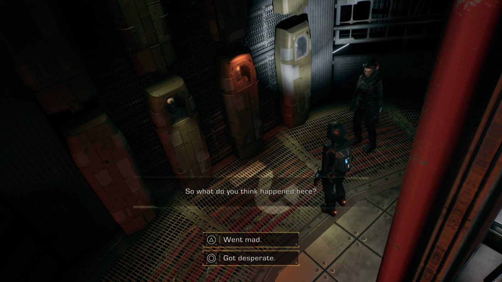 I was really happy with the environment of this episode, and could feel them leaning into the space-horror vibes. A chilling mystery fills the halls of the abandoned colony as Drummer and Maya explore deeper into the facility, finding the corridors lined with countless make-shift coffins. It was intriguing learning about the history of some of the first settlers, and what became of them out here on the frontier. Unfortunately, seeing as the residents have long passed, there isn’t much to interact with outside of logs and scavenging materials. There’s not a lot of important decision moments to make that feel like they impact the greater narrative, save for the climax near the end of the episode.