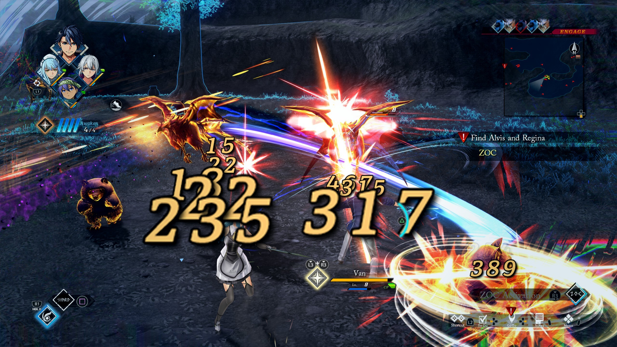 Those are just the basics, and you actually have even more tools at your disposal in action combat. First is ZOC, which allows you to briefly slow down time while keeping up the assault. ZOC is on a surprisingly short cooldown, so there's no reason not to use it constantly. Some characters will also learn a unique Awakening skill, which massively increases their damage output along with healing them over time at the cost of the Boost gauge. Awakening can't be canceled in action combat and will continuously drain Boost while active, but entering turn-based will instantly apply a plethora of buffs to the user and stop Boost consumption. Awakening is super powerful, but so is each segment of your Boost gauge, so you need to weigh the pros and cons a bit more before breaking it out. On the flip side, it's SO powerful and boost is easy enough to build back up, so you'll only hesitate to use it if you know a boss is right around the corner.