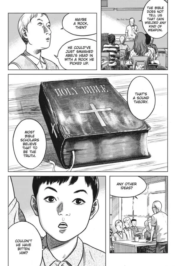 While reading the first volume of King of Eden, I was instantly reminded of 20th Century Boys (which Nagasaki was involved in alongside the author of that work, Naoki Urasawa), with the raw art mixed with thoughtfully-paced conversations and a few flashbacks littered here and there. It’s a style that fits well for a seinen series (which is targeted towards older male audiences), and while there are quite a few scenes that can get fairly gory, the adult content lies in the information dumps and interesting dialogue that’s within these pages. Stories from the biblical tale of Cain and Abel to historical references to the fall of the Babylonian empire are explored, and while you can still enjoy the story without knowing these references, it might help to brush up your historical knowledge. That said, the characters themselves are a bit underdeveloped – everyone but the main duo is expendable, so I like not wasting my time with an army of red shirts and get back to the worldwide conflicts instead.