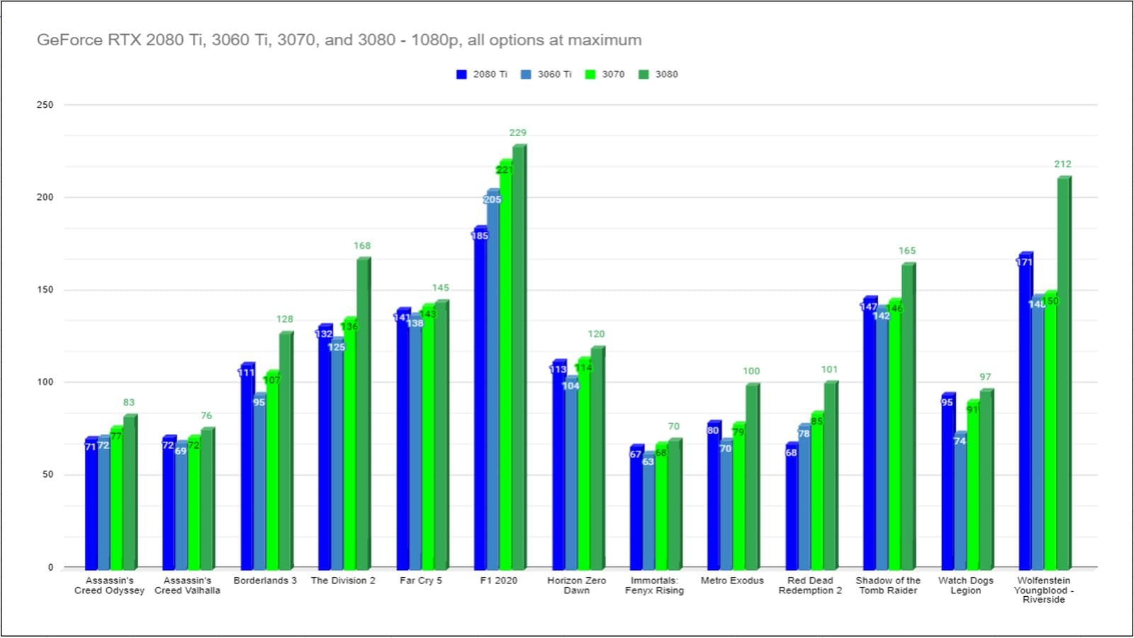 There are a lot of interesting bits of information to glean from these benchmarks. Sure the standouts are the big number jumps, but it also indicates something subtle as well. Games that take advantage of new lighting like RTX instead of performing complex calculations for lighting and shadows see a sizable boost over their contemporaries without that tech. By way of example, Assassin’s Creed Odyssey is notoriously CPU-bound, and since it runs on the Anvil engine, so is Assassin’s Creed: Valhalla, so throwing more hardware at it will only go so far. If the game were to take advantage of tech like RTX, we could see that constraint removed, likely granting huge gains.