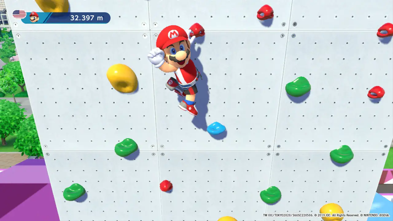 Of the over thirty Mario & Sonic 2020 has to offer, there was only one I actively disliked: discus throw. In my many attempts at the event, I still haven’t been able to grasp what I’m supposed to be doing control wise. It’s also one of the few minigames that force you to use motion controls, even when selecting buttons only mode. It’s not too big of a problem, considering the wealth of other, better minigames, but it would have been nice to have a minigame collection without a stinker among them. The rest of the minigames have a surprising amount of depth to them, granted this partially comes from extra actions you can perform which you only learn about through tips after finishing a minigame, but I felt compelled to play each one repeatedly to stand a chance against my AI opponents on the hardest difficulty or beat the real life Olympic record for each event. While every minigame is fun, save for the aforementioned discus, the dream events are still a treat in their own right. You can run around an arena shooting targets, participate in four-way boxing, and race through a city on a hoverboard (my personal favorite, and as of writing I’m second on the online leaderboards). I wasn’t a huge fan of the dream boxing event and most people will probably find these three to be the best part of the package, but the rest of the minigames are still no slouches. I even enjoyed some of them more than the games featured in Super Mario Party.