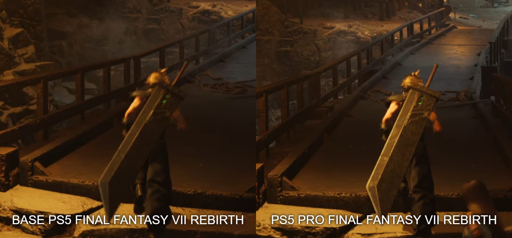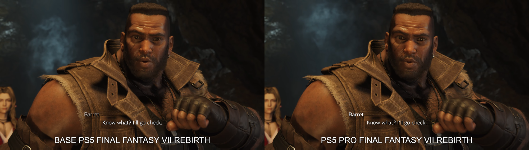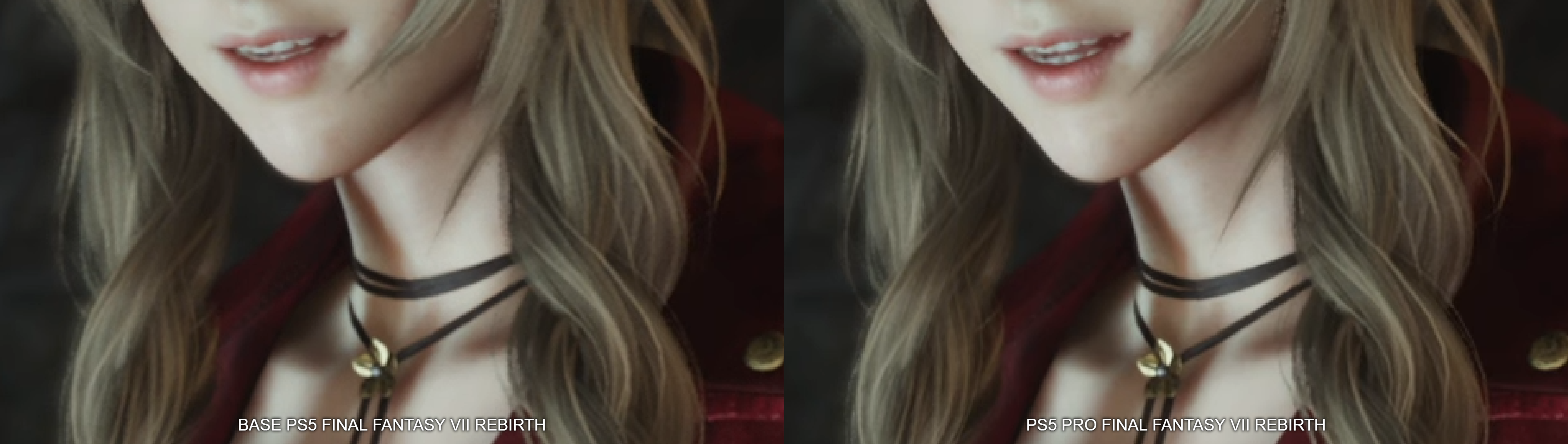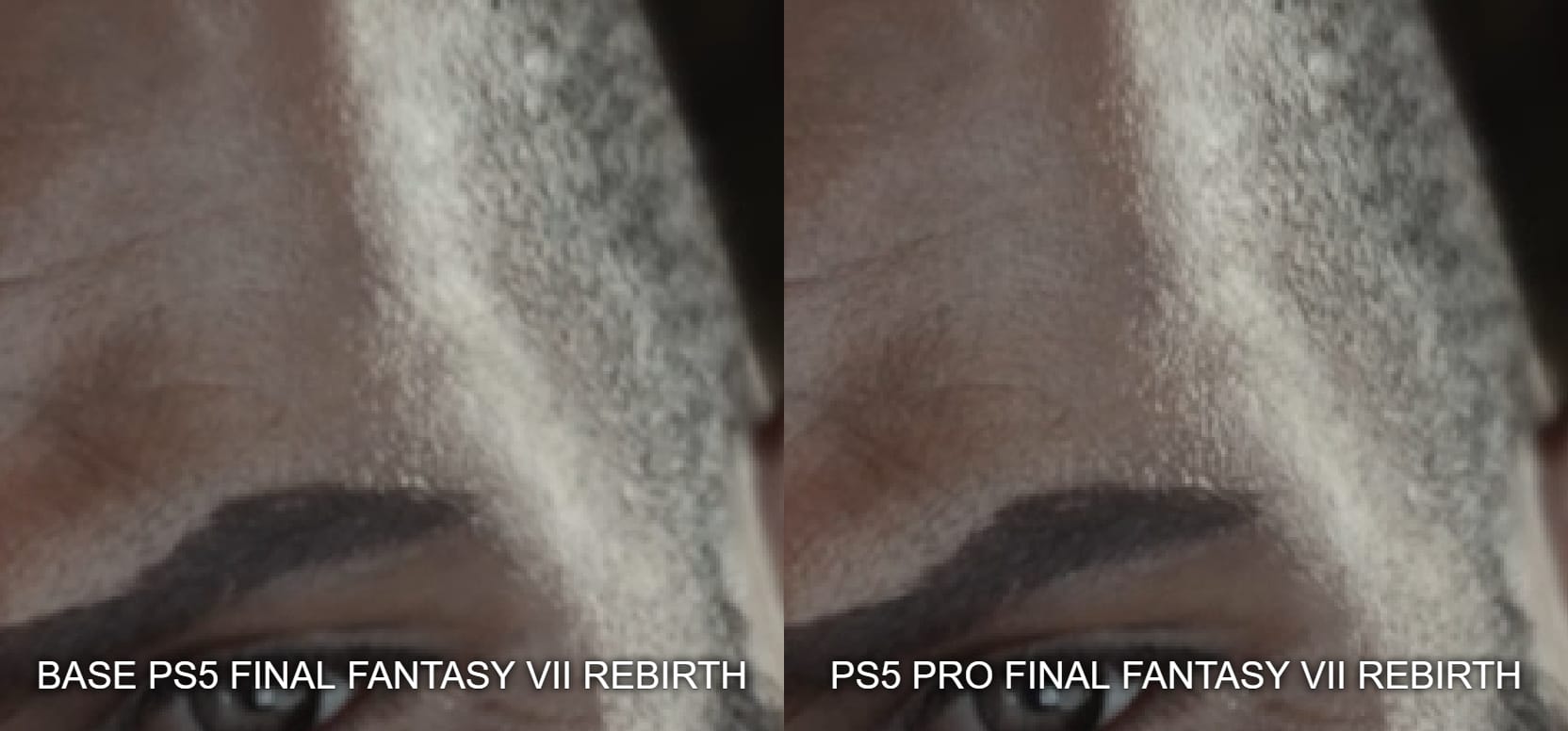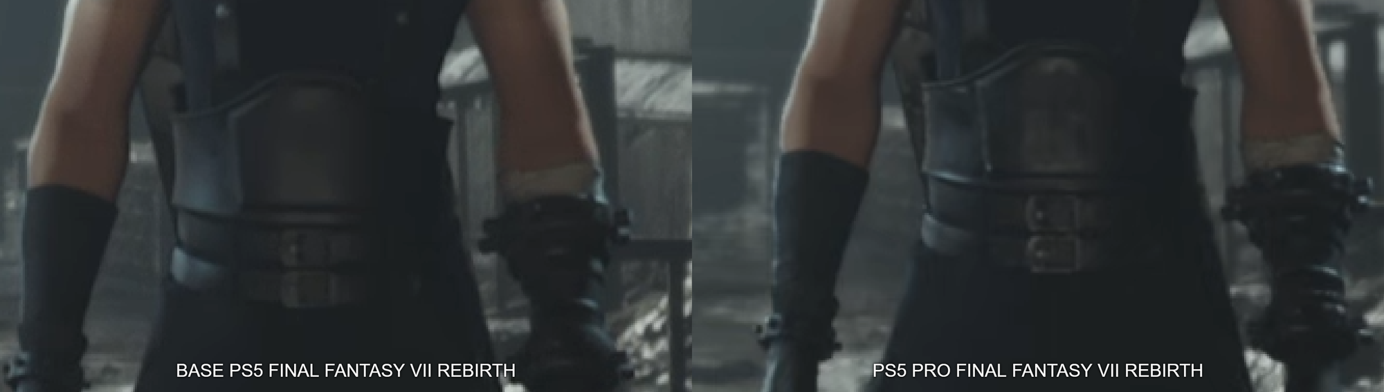 Sprinkled throughout this article are examples of our captures running side-by-side, captured from the base PlayStation 5 and the PlayStation 5 Pro. They’re as synchronized as possible, but even in areas where they aren’t 1:1, it’s immediately clear that there is an overall clarity that is achieved by this hardware refresh. In the case of Final Fantasy 7 Rebirth, you can see that skin texture is cleaner, and there is additional detail in Cloud’s armor.