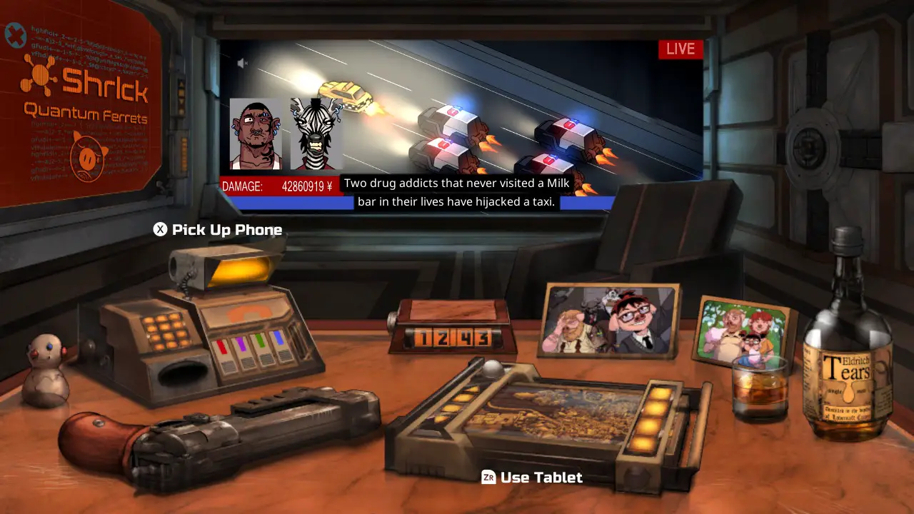 The biggest issue that Save Koch has in terms of playability is the fact that this is all done in real-time. While this does pressure the player into making quick decisions, this also means that there’ll be times where minutes go by before you do anything. Your associates will take their merry time with missions, all the while you fiddle with the phone or check the Schrick board. This is just fine in a first playthrough, as you’re thrust into the situation with nary a tutorial, but afterwards it makes for added monotony. The lack of a dedicated tutorial itself other than some introductory screens also creates a confusing mess when you need to get right to it. Heck, I didn’t even realize you needed to contact Fungus the hacker in order to use the Schrick board the first time until the second day. Luckily, that was also my playthrough where I found out how easy it was to lose thanks to self-inflicted headshot wounds.