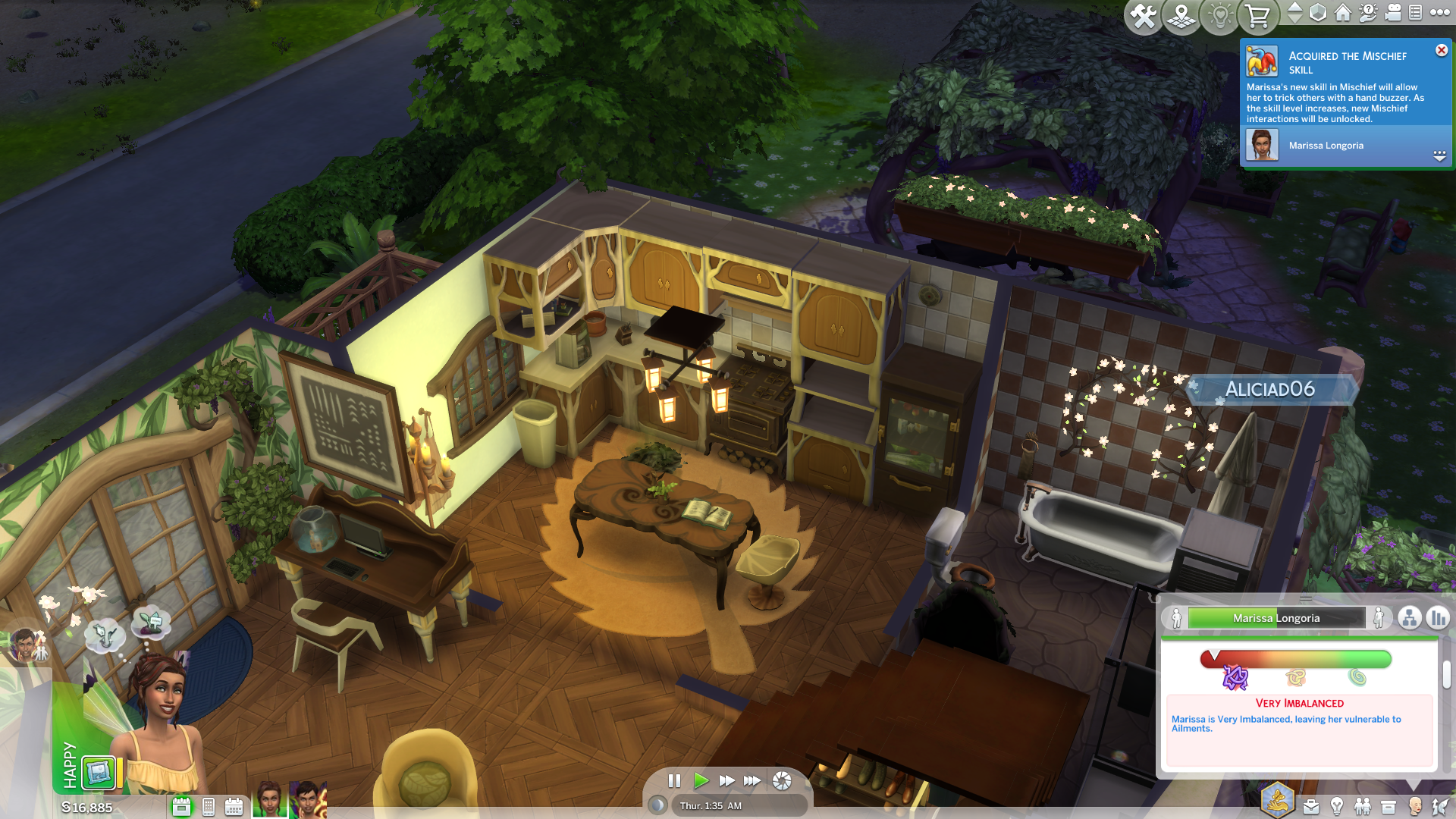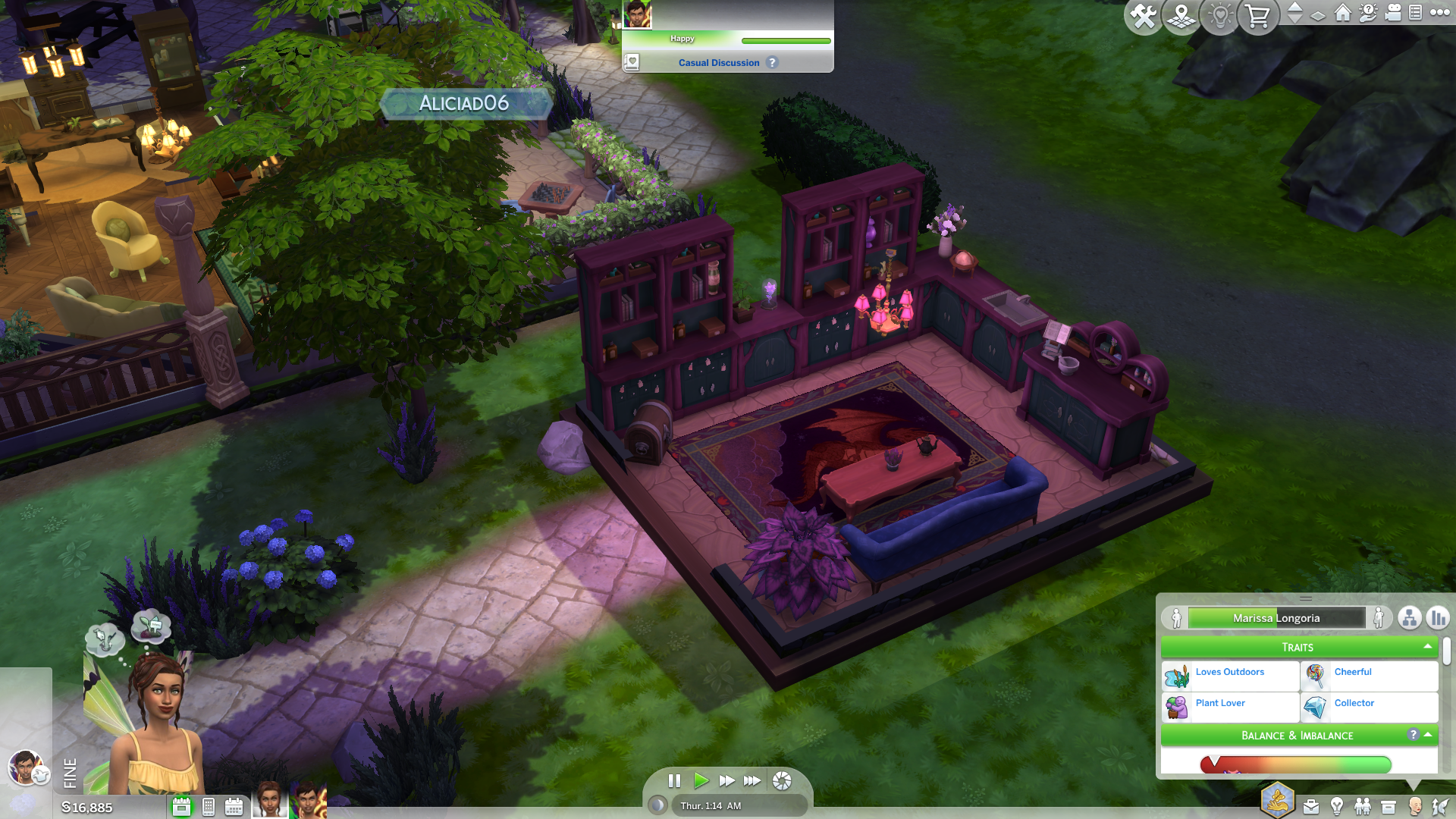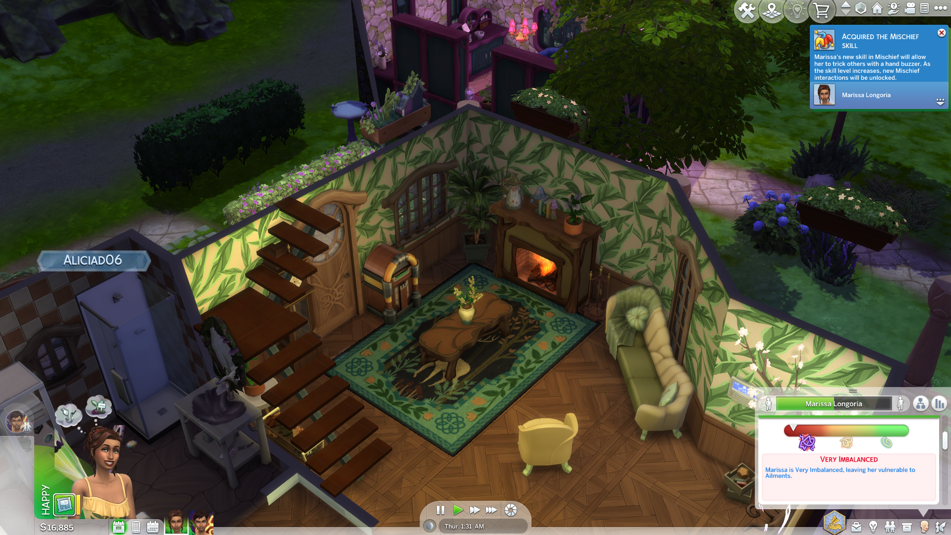 The pack also contains three new traits, Mystical, Disruptive and Plant Lover. Mystical gives Sims an affinity for the apothecary and gardening skills, helping them learn faster. And makes it so your Sim has an easier time at making friendships with supernatural Sims. They’re also more attuned to nature, getting satisfaction from handling plants and maintaining their balance – more on this later. The Disruptive skill is for your mischievous Sims and pairs nicely with one of the paths you can take as a Fairy. It raises your mischief skill quicker and allows you unique interactions that sabotage plants and the like. Finally, we have Plant Lover, which is the skill I have the most experience with due to how ironically disruptive it can be. Sims with this trait adore plants, finding happiness in taking care of them and getting distant and upset when they don’t interact with them. This seemed like a perfect trait for my Fairy Sims and the new houseplant mechanic, but it quickly became an annoyance, as if my Sims weren’t constantly gardening or talking to their house plants, they would get a sad moodlet. It was also a massive pain when harvesting plants, which ALSO gave them a sad moodlet for ‘harming’ them. It just seems a bit overkill and steers me away from wanting to pick the trait in the future. Overall, the new skills are fine.