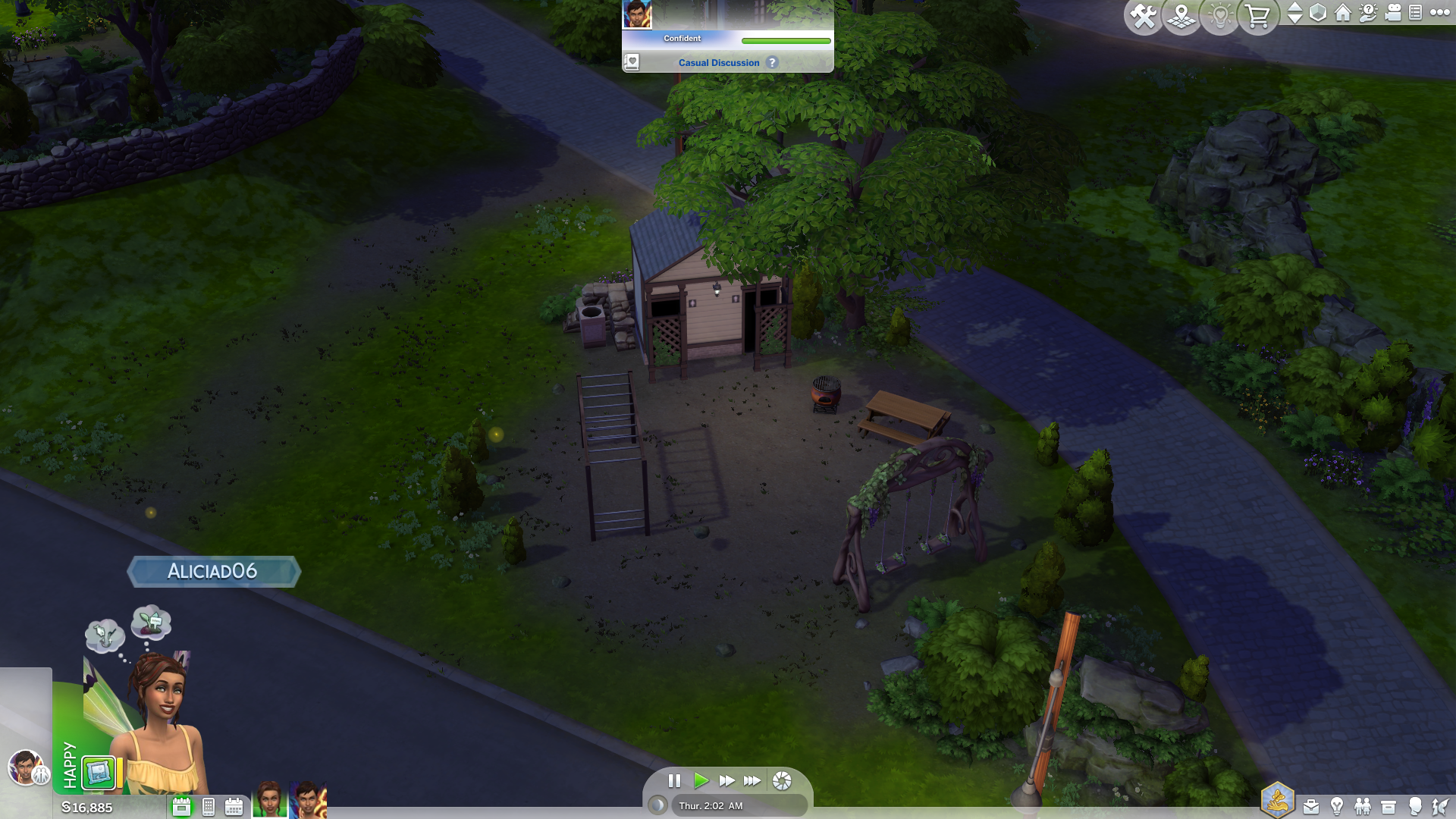 Each area has its own unique feel and has an abundance of people to meet; I felt immersed in Enchanted by Nature’s vibe as each villager had interesting lore, like an estranged daughter and a queer fairy couple. Speaking of lore, there’s plenty for you to explore if you’re interested in it. I found this the case especially for the Gnomes which was a delight to uncover, no spoilers here though! Whenever I took my Sims outside the house, I felt like there was always something to do. I placed my Sims in Sprucederry Grove, and it was full of Fairies and Plant Sims to meet, dotted around the area would be BBQs, swing sets and benches to interact with so it felt like I was naturally meeting a lot of people without actually leaving the plot. I also loved the addition of rabbit hole shops that you could pop into, my plot was next to a Gardening store that sold books on the topic and house plants. There’s a lot of these mundane shops scattered around Innisgreen and whilst they are rabbit holes (boo), it’s still nice to see.