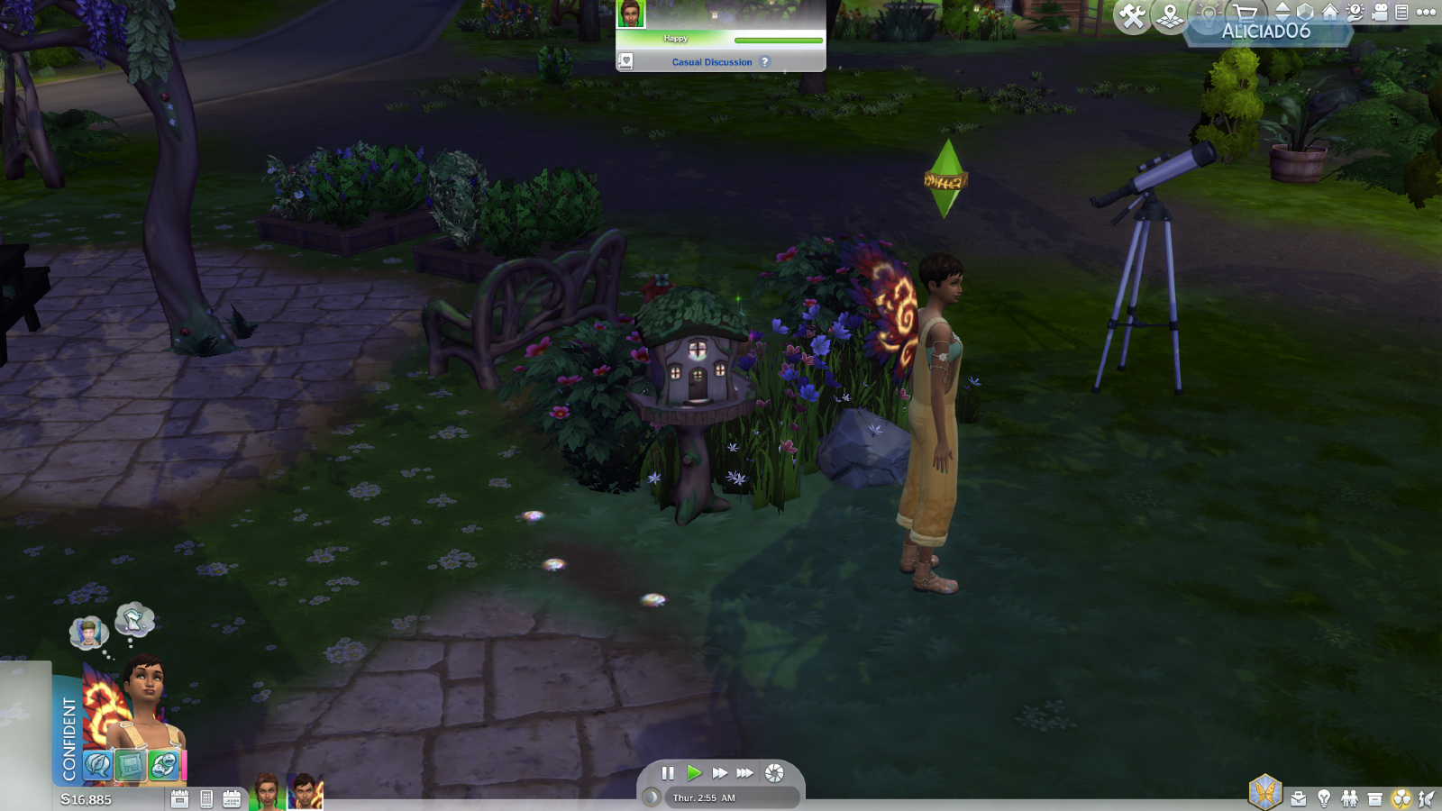 To kick things off, how do you become a Fairy? Weirdly, becoming a Fairy is extremely easy, both in how you can just pick the option in CAS straight away and taking on the quest to become a Fairy in-game. The quest involves summoning Mother Nature and simply asking to be a Fairy, she’ll say yes and then you’ll have to go bathe in the emotion pond found in the world. Then, poof, you’re a Fairy. Lackluster? Maybe. Convenient? Yes. Thus begins your Fairy adventure, any Sim can be a Fairy, but babies and toddlers won’t gain their wings until they become teenagers.