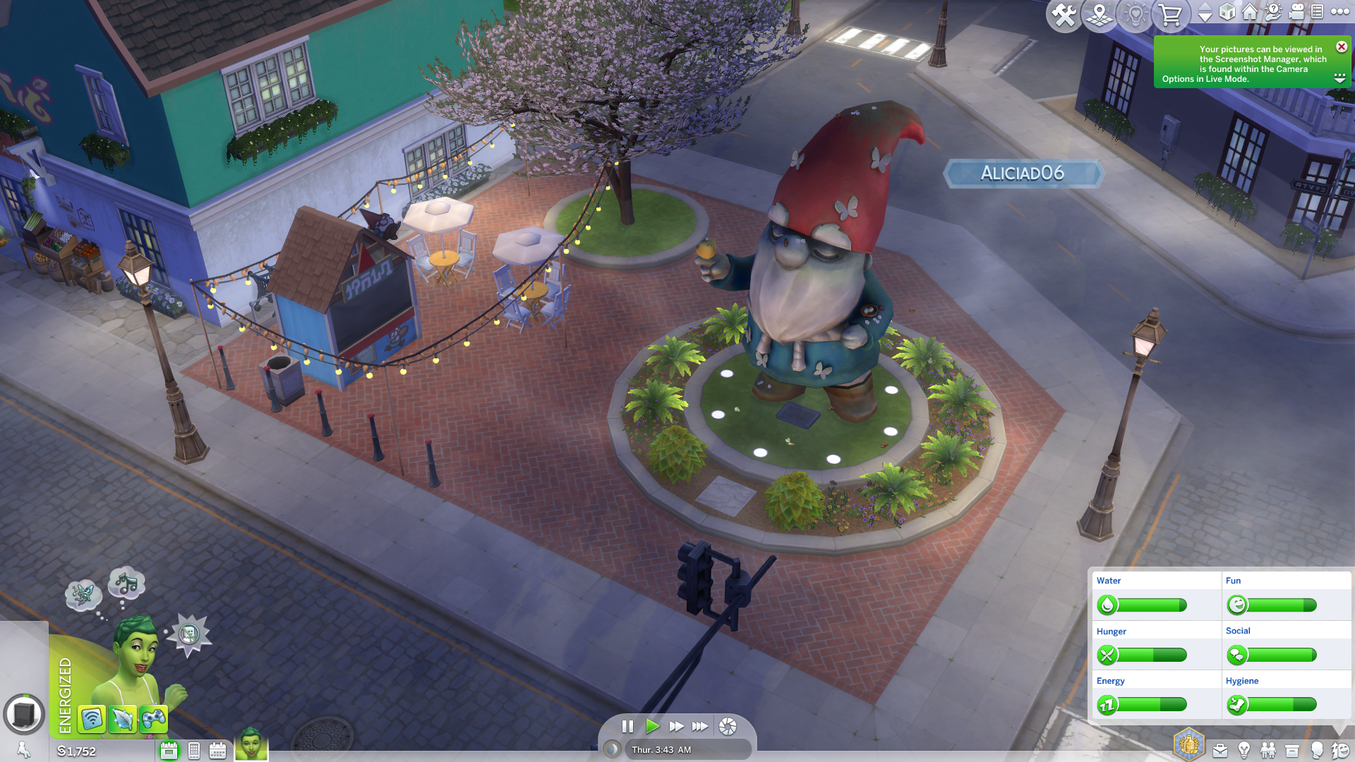 Ailments existed before this pack, but now we have a whole lot more of them to worry about. From the Greenie Meanie to Simoleon Fever ailment. You’ll know when your Sim contracted an ailment because it’ll be visibly displayed on your Sim’s body, it’s flames up their arms or random spatters of paint on their face. Each ailment will result in consequences that can be rather annoying, the two mentioned above makes you more angry but more affiliated with the gardening skill and the other has you literally coughing up simoleons. These are funky when you first encounter them but also become a bit of an annoyance with how frequent they seem to appear. I played with my Plant Sim for an hour, and I contracted two ailments within that time. You can thankfully turn this off as it gets a bit annoying.