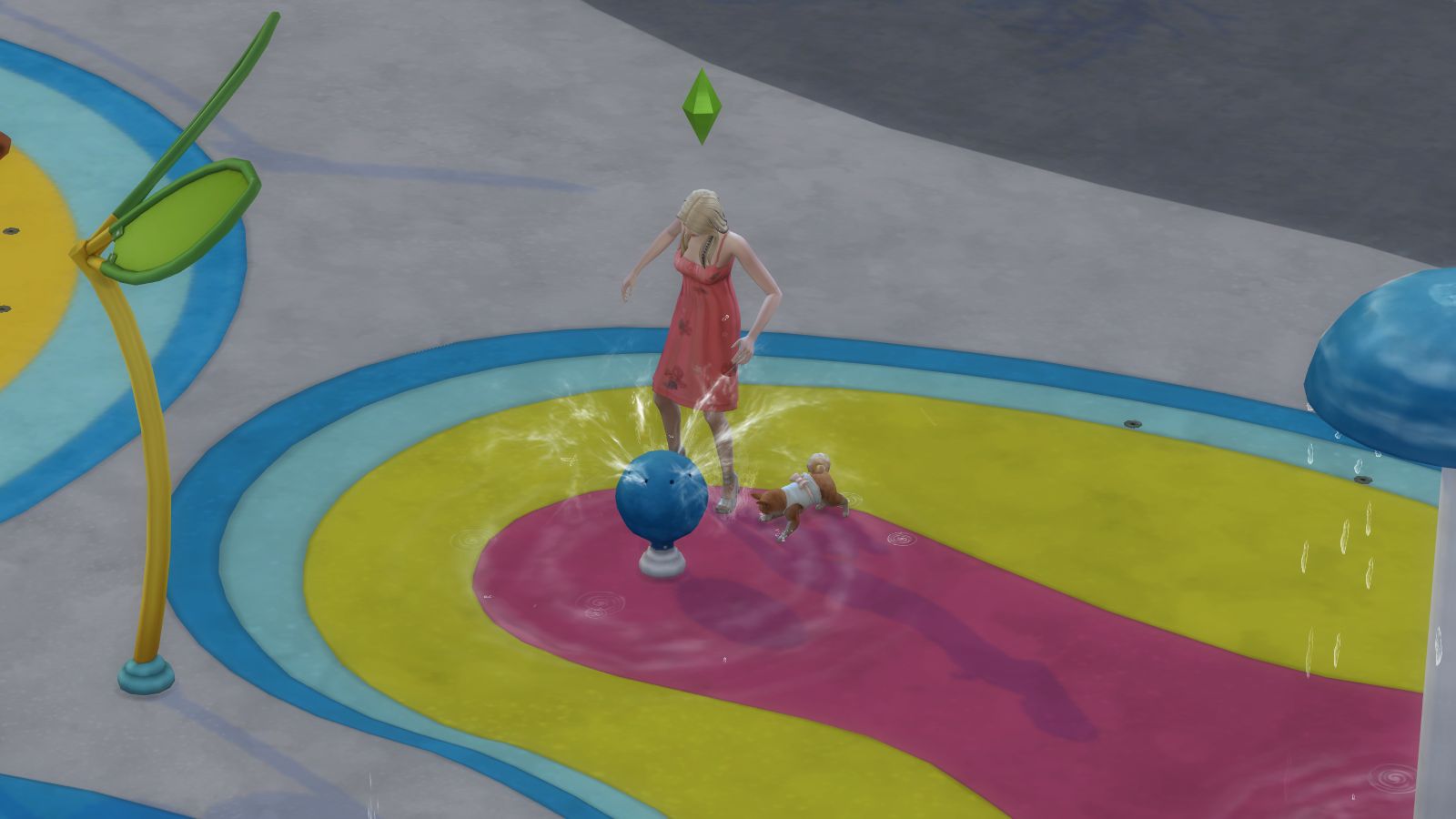 The splash pad park is a cute new addition to the game.
