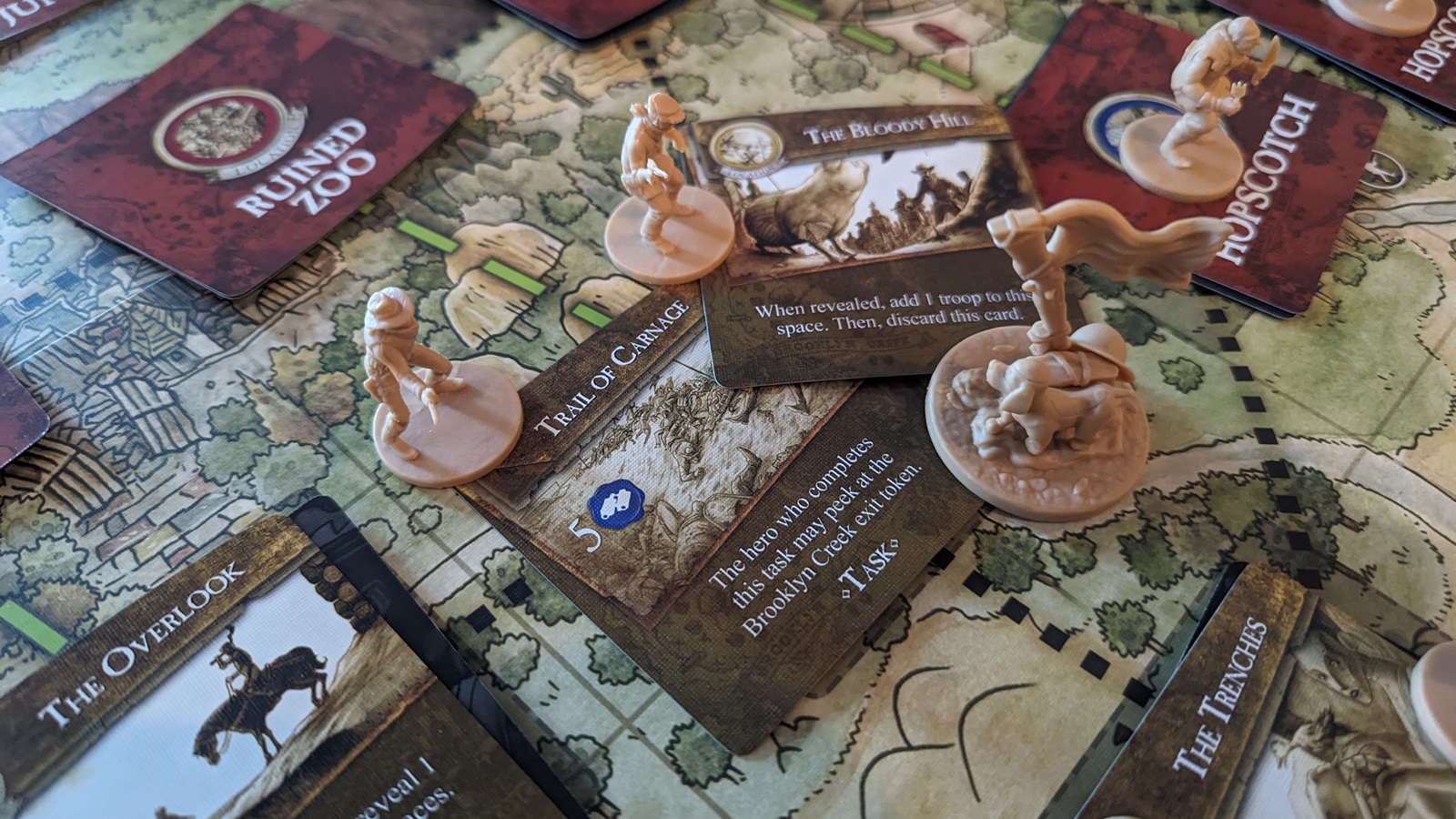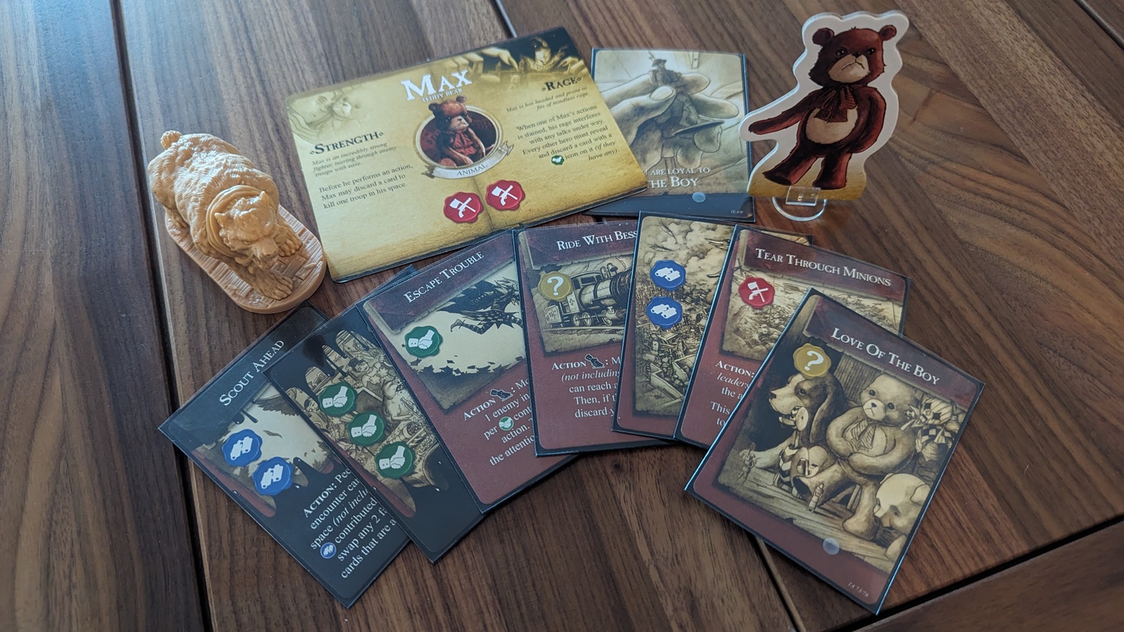 The artwork is charming and despite knowing nothing about the source material I enjoyed the artwork and flavor text across the game. The main board embodied the perilous journey with a variety of strange locations. The game felt thematic of a group of toys and their desperate struggle across hostile territory.