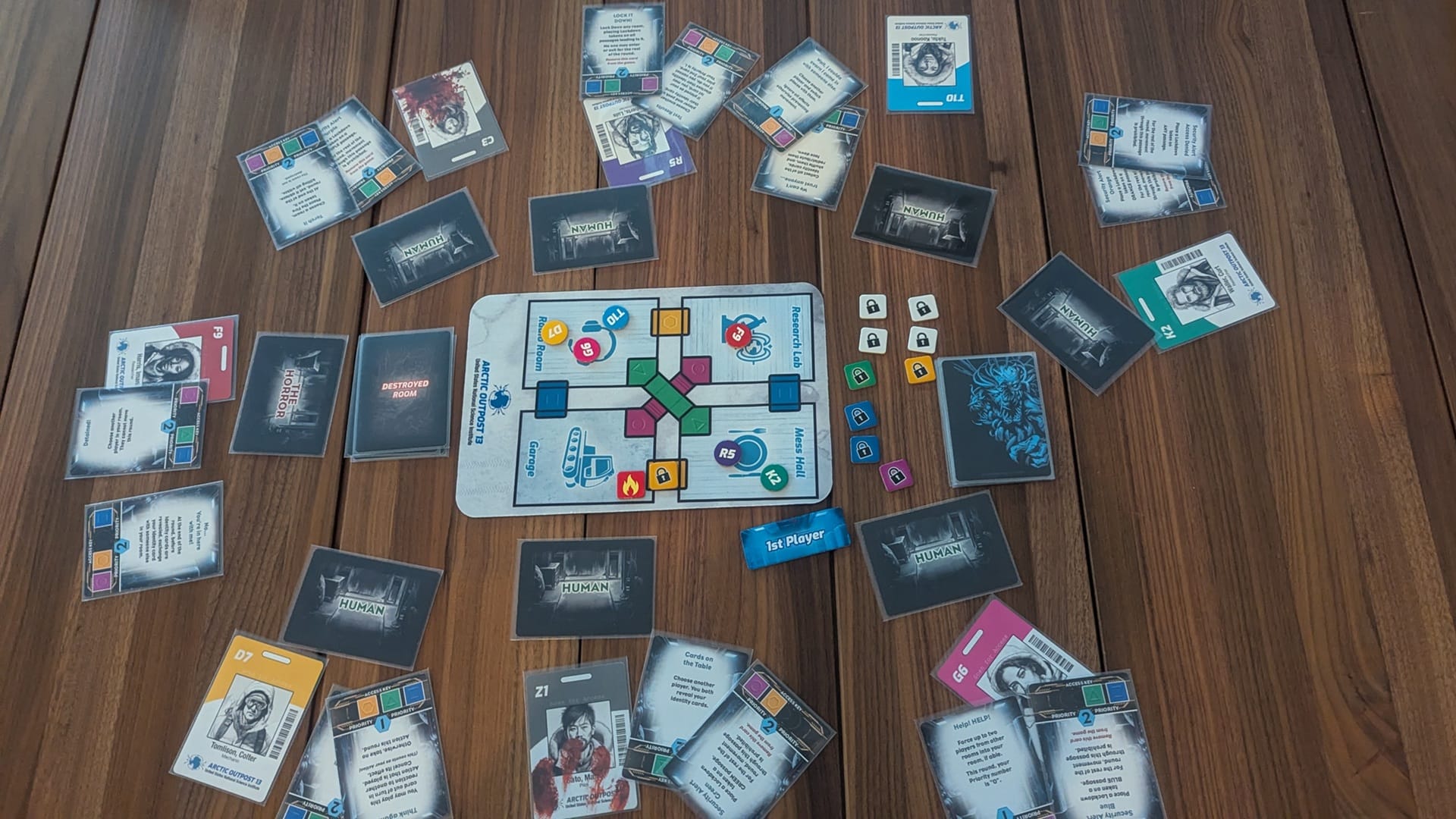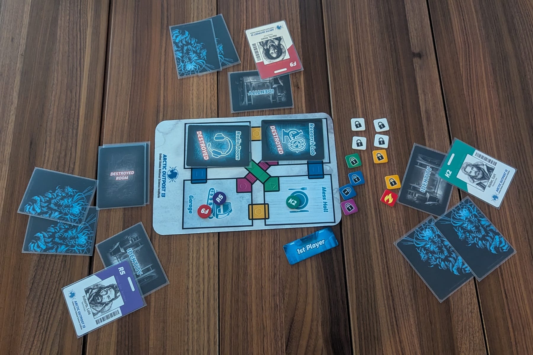 We’re back with a sequel to This Game is Killer: Alien on Board, and this time we’re stuck in a frozen outpost trying to determine which of us is not human. That’s right, this time we’re trapped in The Thing rather than Alien. You can check out my review of This Game is Killer: Alien on Board, as the gameplay is nigh identical. Pretty much all of my comments for that game apply here. Let’s examine this game for differences and see if it’s trustworthy or not.