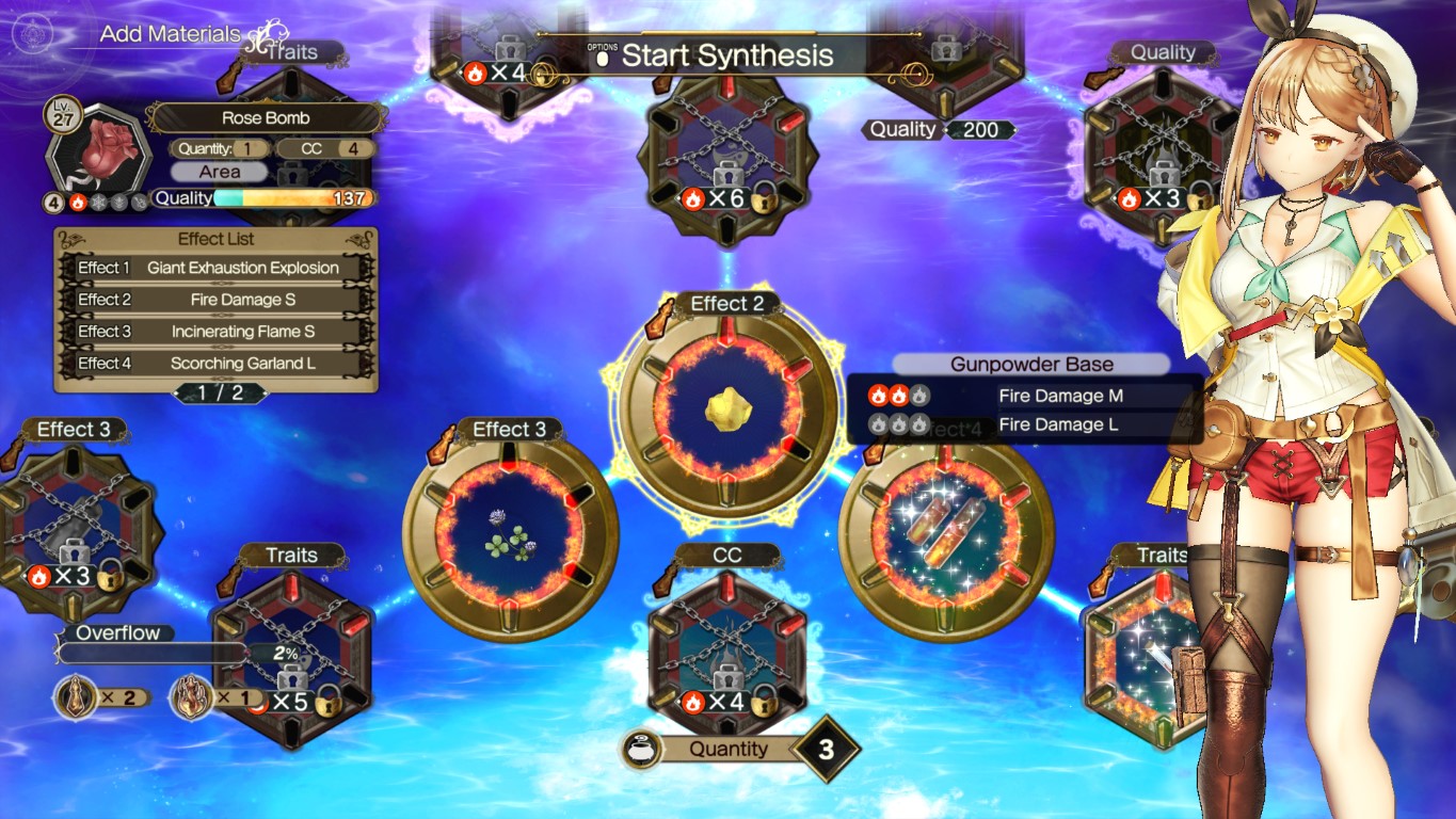 Atelier Ryza’s gameplay was admittedly what attracted me to the game the most, especially its signature Alchemy system present in each entry of the series. This system should not be underestimated as it’s quite literally one of the most critical aspects of the game. As such, it is quite broad and in-depth, so it might take some time to get used to for new players especially. To make any item in the game, players will first have the recipe, all the necessary ingredients, and the skill to make said item.