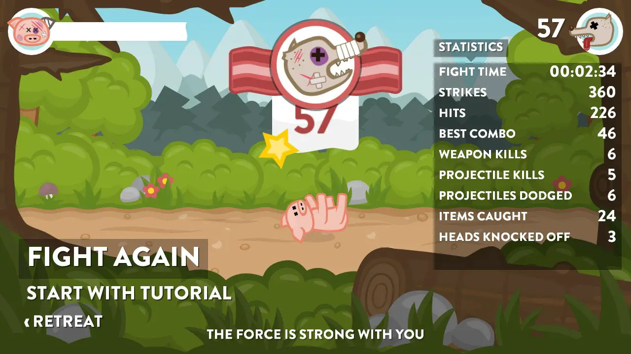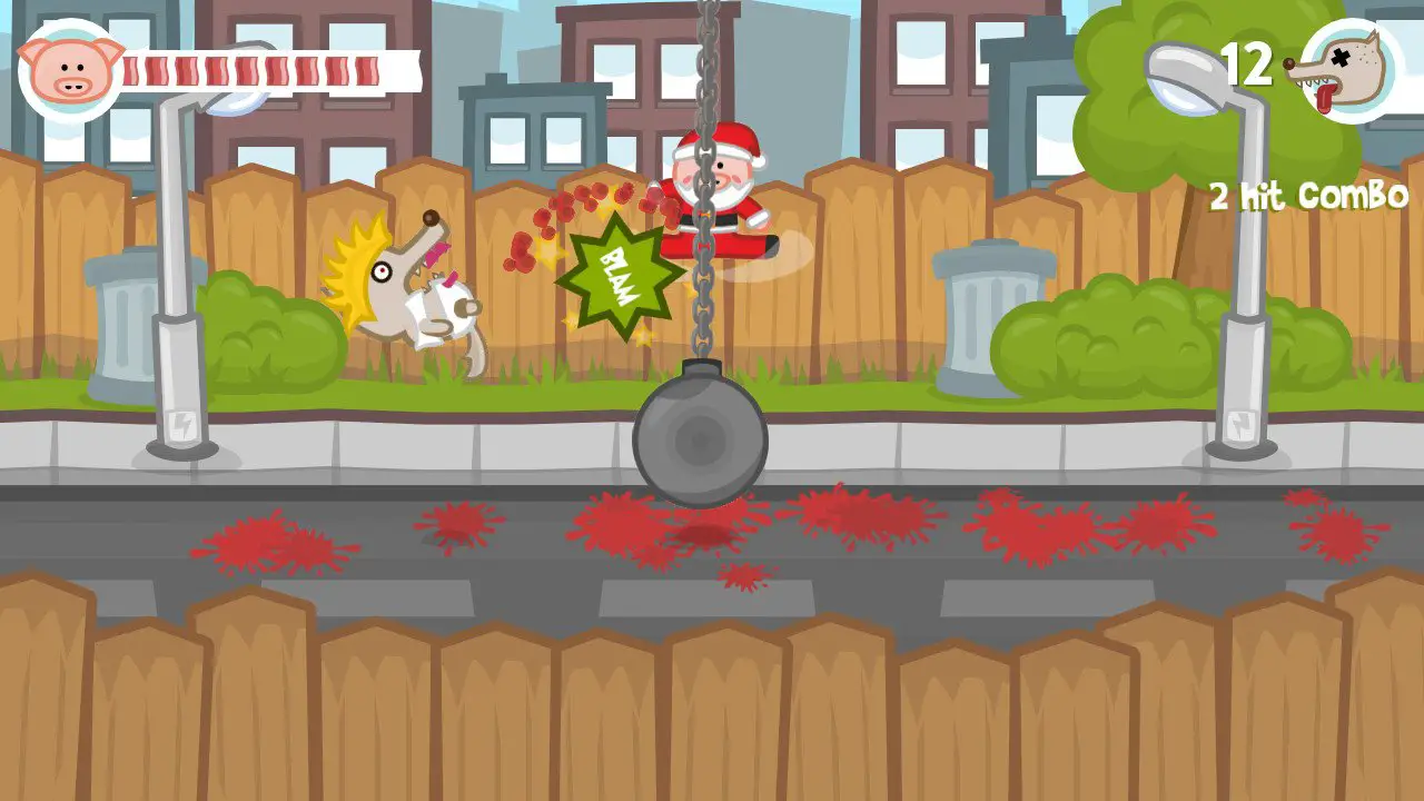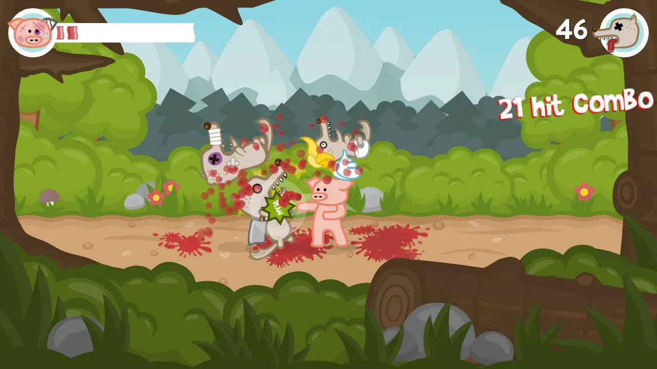 One other thing I liked about this game is the amount of unlockables in this $5 title. You have three main stages, each with their own variety of enemies to dispatch as well as a few different modes (from a classic endless to a sudden death brawl). Hitting certain milestones in-game will also unlock different costumes that you can use to dress up your piggie, so you can spend a while here if you so choose.