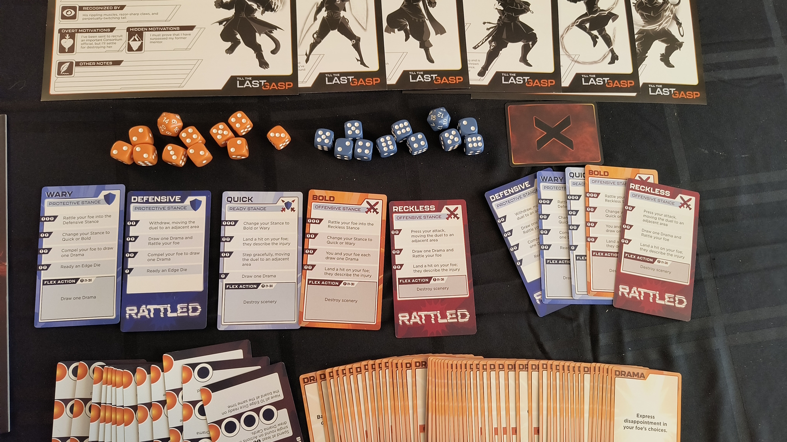 Narrative combat can work, but without a mechanical framework, you are better off collaboratively writing a script or playing make-believe without a product like this. If you want to pit two interesting characters against each other in an interesting way, look for Dice Throne, Battle Con, or Unmatched, as they each provide a detailed and fun way for these unique characters to fight. At $40, Till the Last Gasp just doesn’t bring enough to the table for me to recommend.