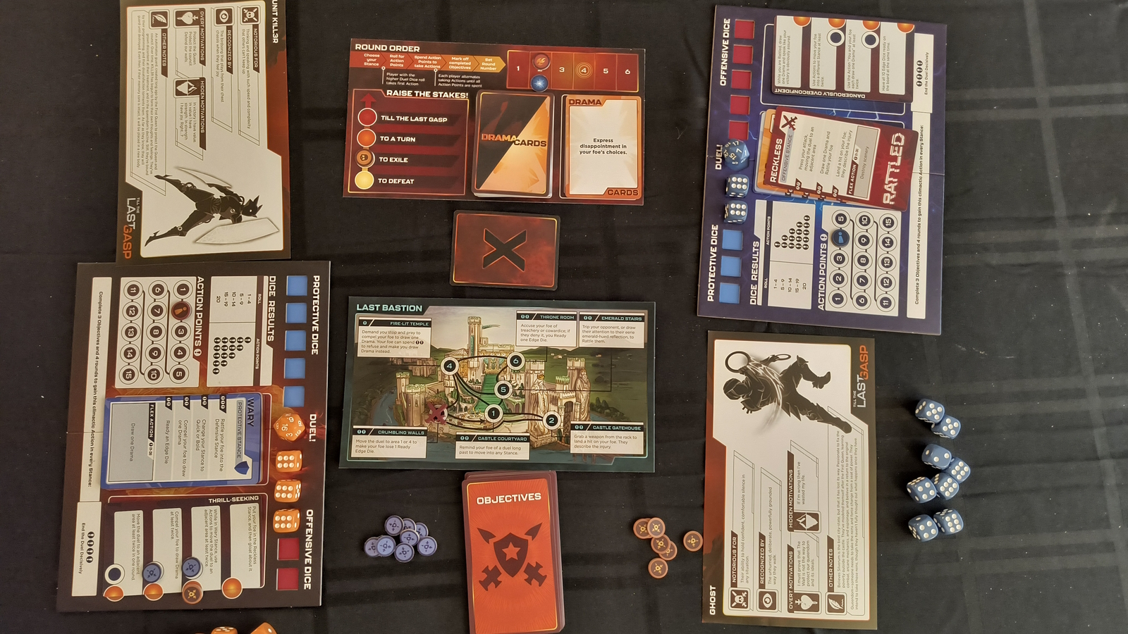 The duel: two combatants enter, one combatant leaves. That is the basic premise of Till the Last Gasp, a two player collaborative storytelling board game from publisher Derrington Press.