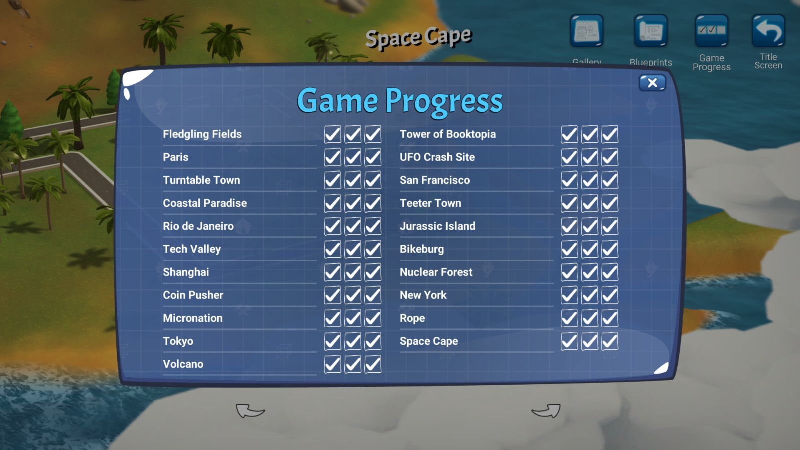 As you work through levels you might say to yourself “Wow, this is pretty easy. There’s hardly any challenge here!” — I know I did. Frankly, as long as you don’t fritter away all of your cash up front, the financial engine will spin up quickly enough, leaving you with enough money to build whatever you need. The financials, however, are not the challenge. Unless you cheat and look at the blueprint list, it’s sometimes about discovering just what it takes to build the next thing. Population density is the challenge when you are building on an oil derrick pad, moreso when trying to do so on the pedal of a bike. In Hawaii, underneath a massive active volcano, your challenge is both density and the fact that tall buildings are easy to knock down and set on fire. Each level has something that’ll at least slow you down, though I didn’t encounter anything that’d stop me.