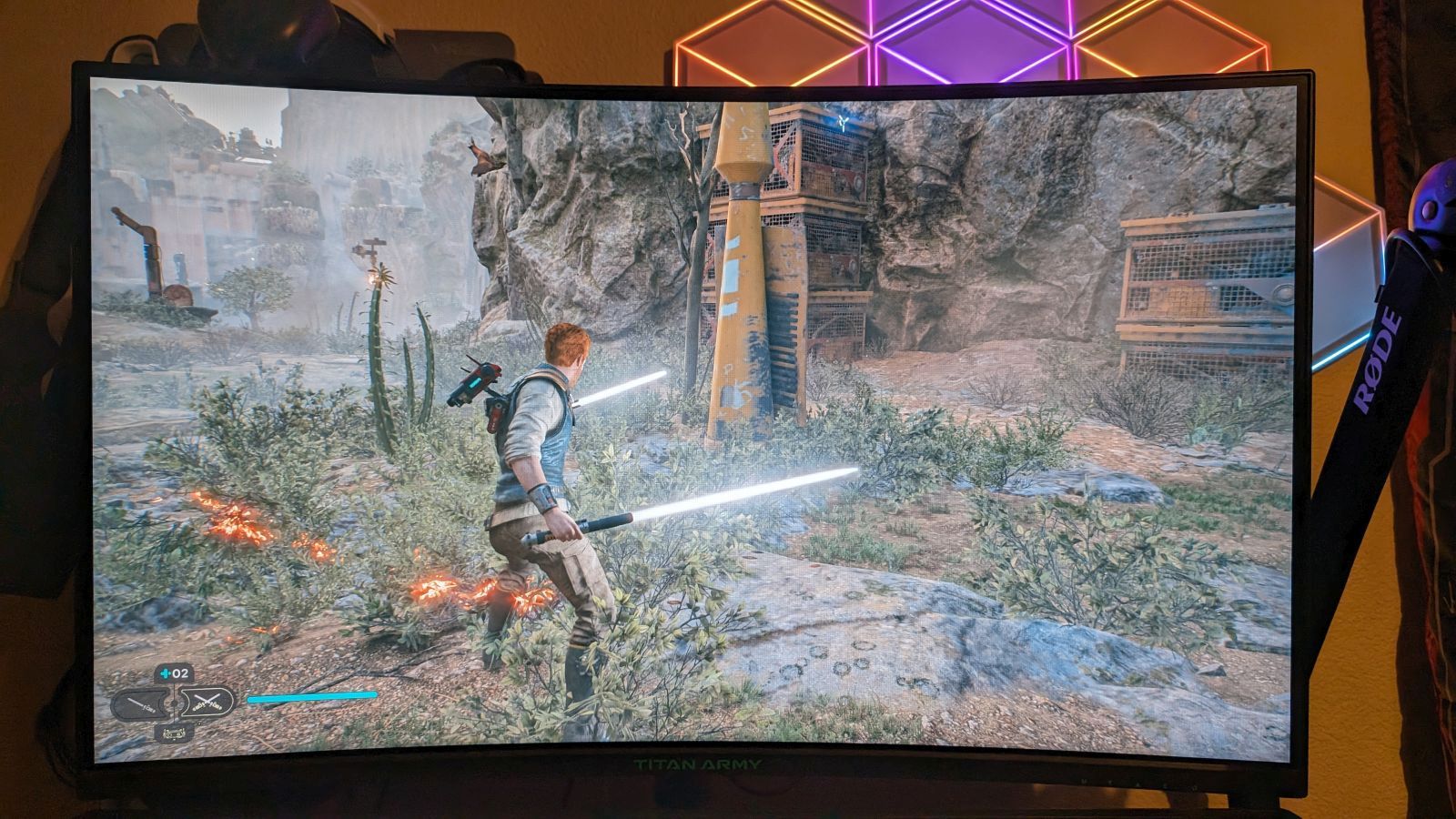Starting off with all the specs, this is a 31.5” curved 240Hz monitor with a 16:9 aspect ratio, and a 1ms MPRT response time. It also has an impressive color coverage at 99% sRGB and HDR400 support. In practice, my monitor doesn’t show any bleed through in dark scenes, and looks gorgeous in the light. It also supports Adaptive Sync (once known as G-Sync), which ensures a tear-free outcome for both NVIDIA and AMD GPUs.