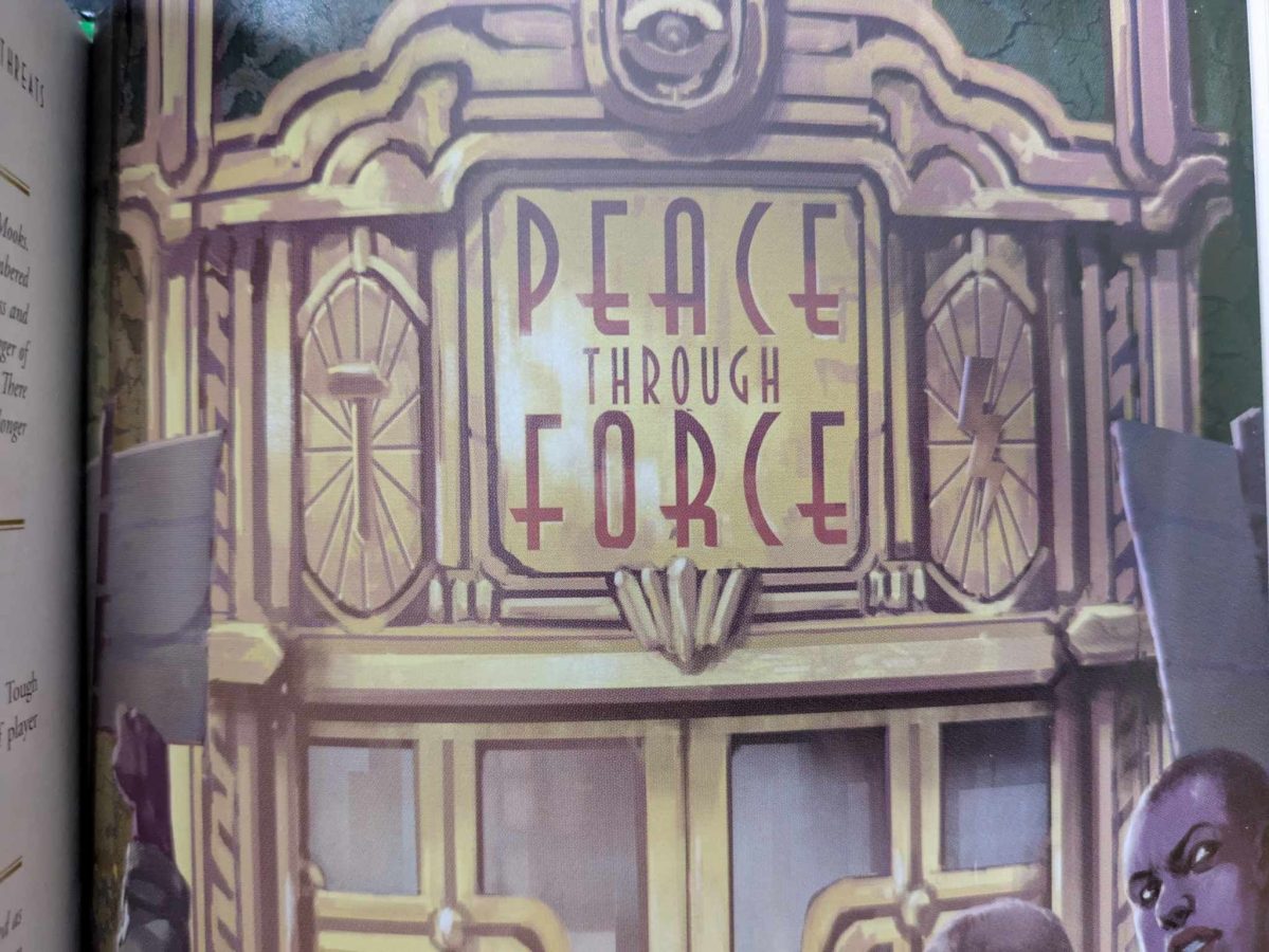 At 224 pages, this smaller than average tome is quite reasonable for its $35 price tag. Durable and stylish, its art and layout may not be the pinnacle of the genre, but they know how to communicate tone and mechanics quite well. My one complaint is that, similar to Osprey Game’s Crescendo of Violence, they could have eaten up more of the page space with text. The blank space on various sides could have been better served with larger text font, but that’s not to say it’s actually bad or awkward while reading.