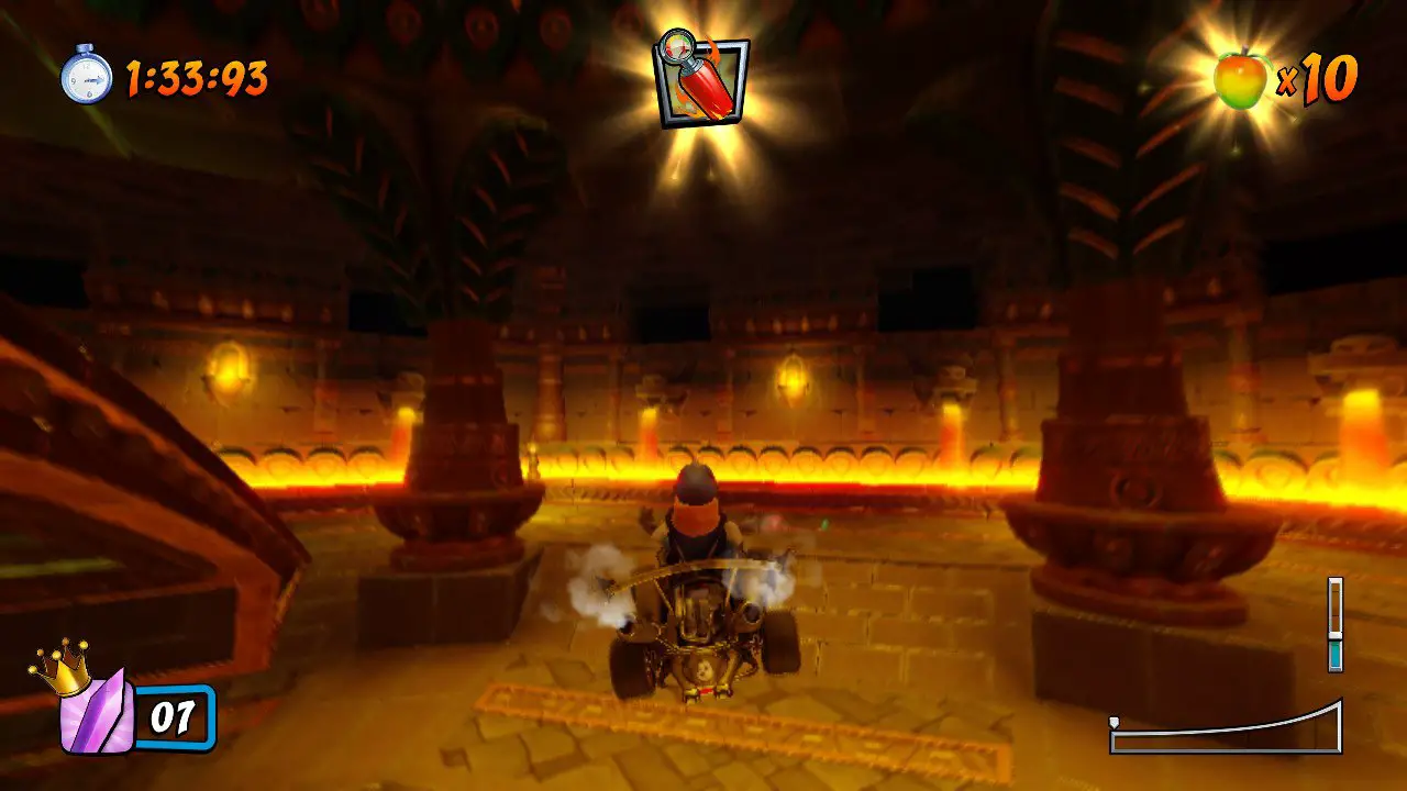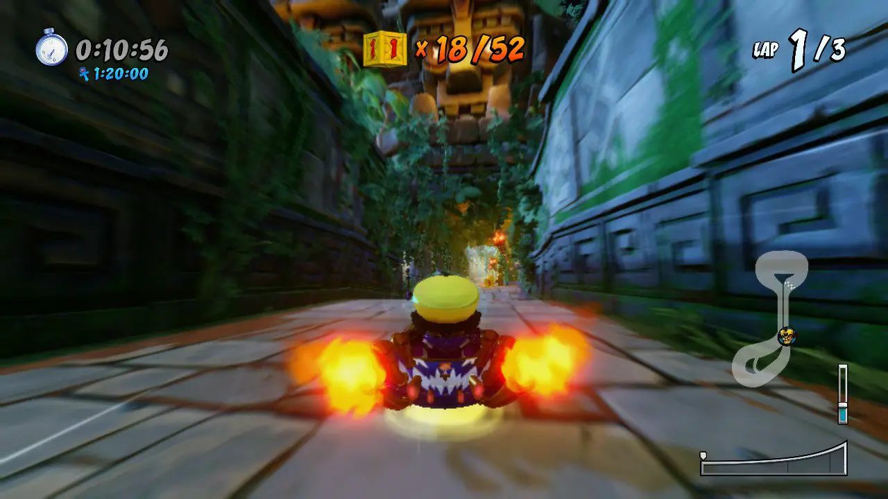 Aside from standard three-lap races, there are also CTR challenges and Relic Races (which are both necessary for endgame content). In the former, you have to win the race as well as collecting the letters CTR; some of these are in some pretty obtuse locations, so you’ll sometimes you need to take one attempt just looking for them. Relic Races are the more interesting of the two, where it’s a time trial version of the track, with a required time you need to beat in order to obtain a Relic. You’ll collect crates that freeze the clock, and doing so means you’ll have more time to get to the finish line. These challenges are tough and should remind nostalgic gamers of how monstrous some of the objectives were.