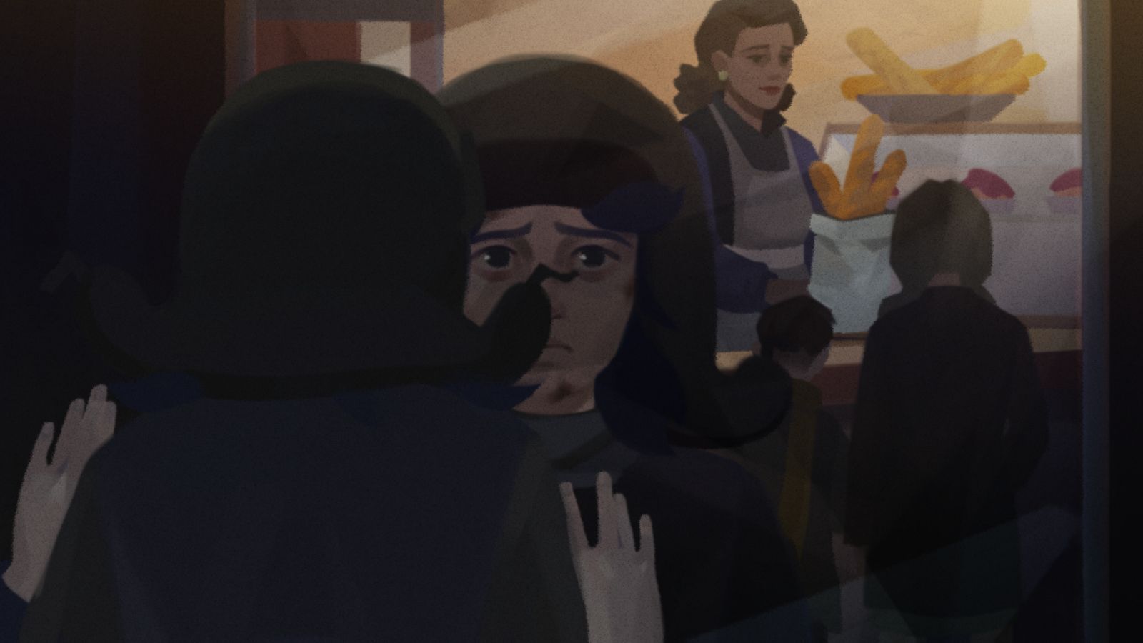 Of course, there’s such a thing as too much tragedy. If the game is too sad, then events can be seen from a mile away, thus paradoxically detracting from the dreary tone. Torn Away suffers from this to a degree. There are a few light-hearted moments, like chasing a cat through town who stole the sandwich you were also trying to steal. Cute moments help, but at the end of the day, when your brain switches into Murphy’s Law mode, it’s harder to be impacted by future emotional beats. I will give the game credit, the tragedy is almost always subtle or straightforward. They never went with gratuitous violence, a rabbit hole which they could have easily fallen down given the time period. Sad and disturbing plot beats are always portrayed with a high degree of tact.