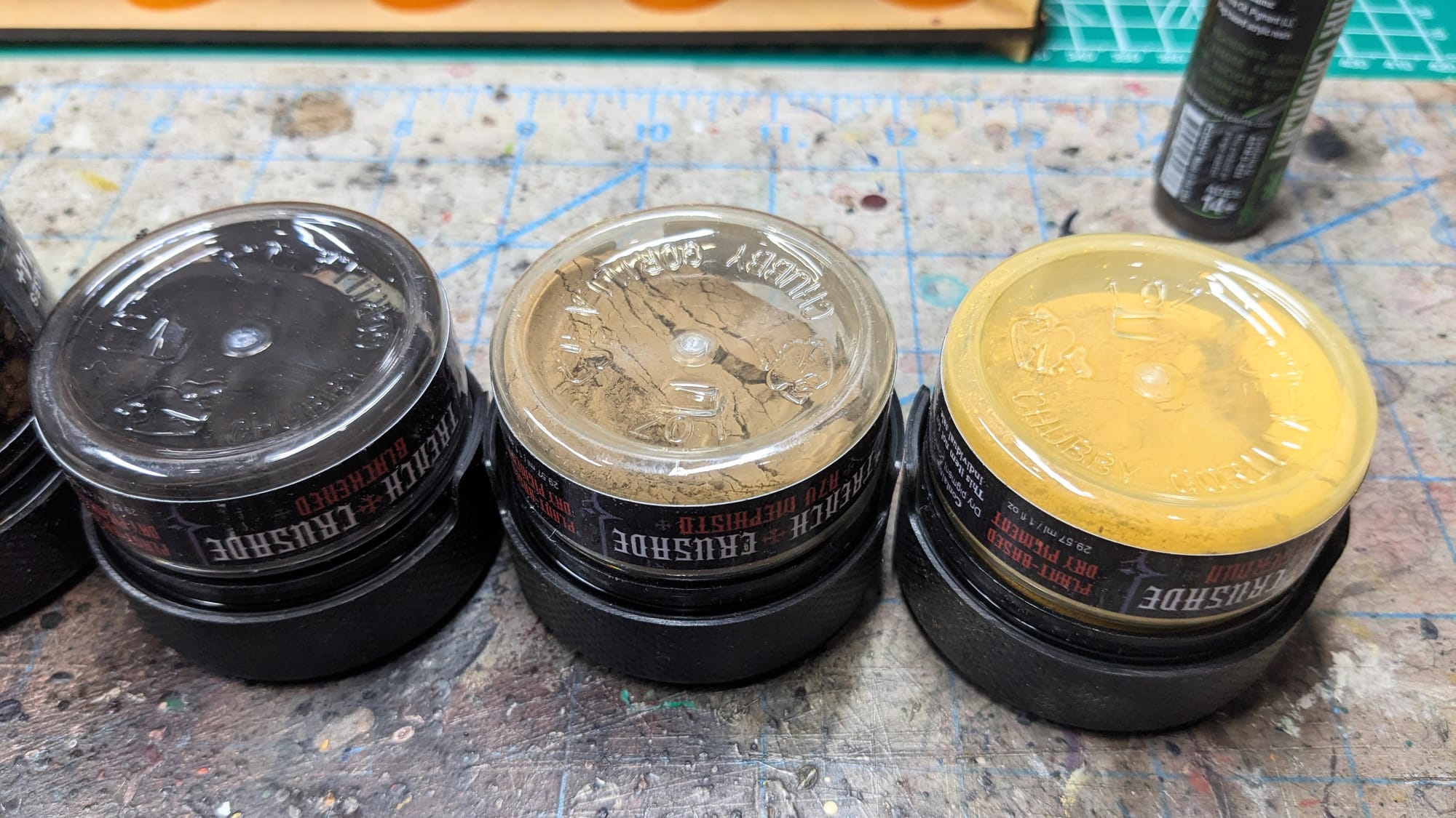 Saving the planet and painting miniatures with some top-notch basing is a win-win. I have painted a lot of minis, using a lot of texture paints, and while they have a limited selection of colors right now, I will absolutely be using them when I can. Other texture paints can be very costly per ounce, especially if you’re painting full armies. A little bit of this texture paint goes a long way. The best part is that it’s using natural elements and materials, so it really does capture the essence of the mud and muck of the wasteland. I don’t normally use pigments for my minis, only because it tends to rub off after a lot of handling. However, I have lots of war dioramas that could benefit greatly visually by adding dust to trousers or wheels. I really like the colors on these pigments, and I think I would reach for them over some of the others out there I’ve used. Streaking grime is neat, and I could see this being very useful and handy for mechanical details on armor plates or engines. Again, not something I’d use regularly, but I can see it being applied appropriately for other models and miniatures.