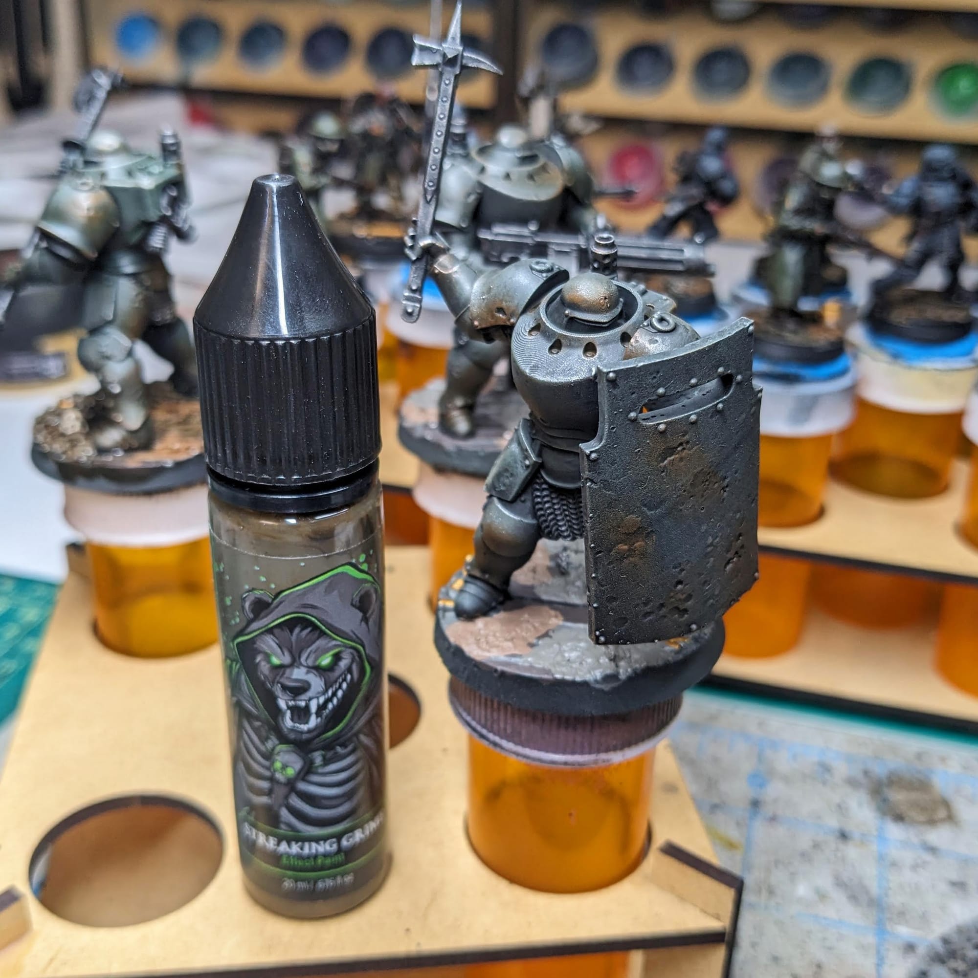 While not part of the bundle box, Bear Cavalry supplied me with a sample of their Streaking Grime Technical Paint to use on my forces. Composed of canola oil, the streaking grime flows easily onto the models. Especially for vertical flat surfaces like walls, shields, and tank armor, this is a great little technical paint to apply after painting to get that mechanical look of leaky oil and unkempt vehicles.