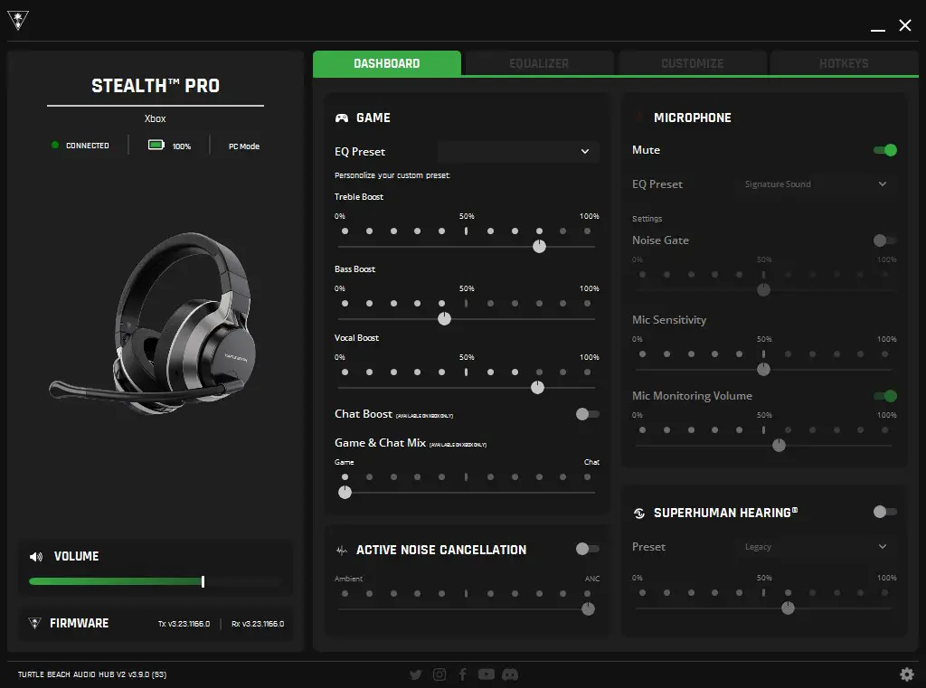Part of the issue lies in the software, which is very disappointing. The Turtle Beach Audio Hub should be your best friend and help you get the most out of your new headset, but it doesn’t (you have to even have a Turtle Beach headset connected just to access it). There are a lot of nice settings you can change, like switching the function of the side button or raising your microphone volume. You can even take all of this with you via a mobile app, but it’s just not enough to make up for a big problem; tuning your audio to its best.