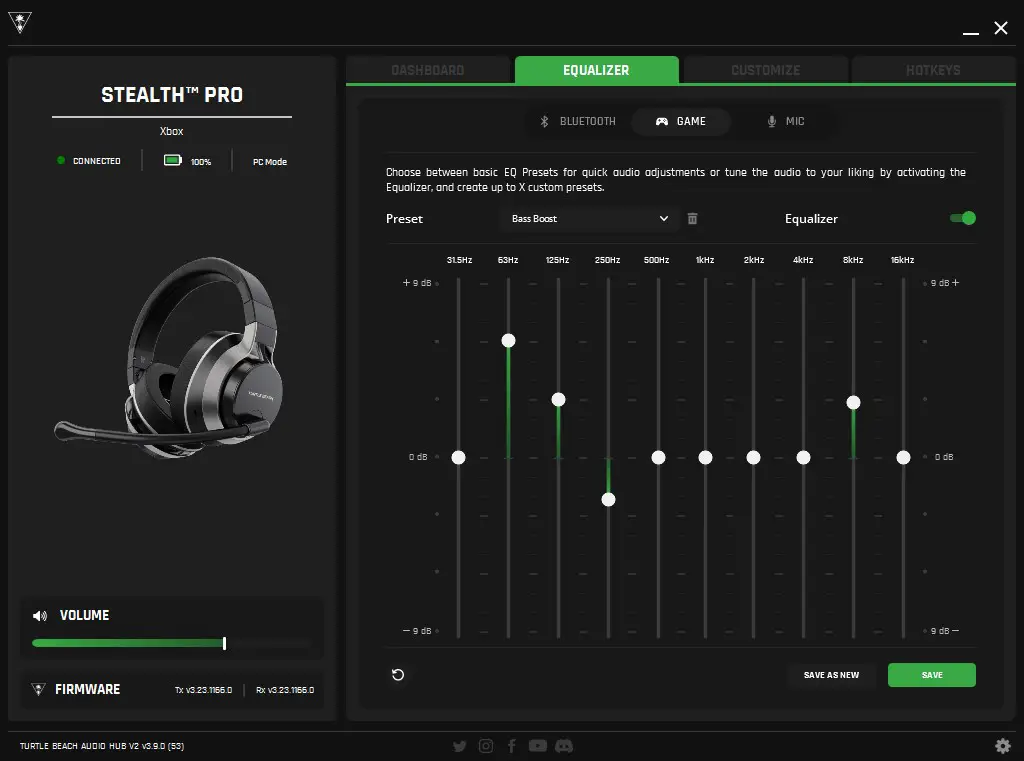 The biggest issue is the lack of good presets. There are a few simple ones in your basic options (sliders for bass, treble, and vocals), and through some online research I was able to find a good one to go with beyond the four presets. But, the advanced equalizer (EQ) is almost useless, with no presets at all. This is such a problem because I don’t know many gamers out there that know how to maximize an EQ themselves. At least give us a bass boost or something.