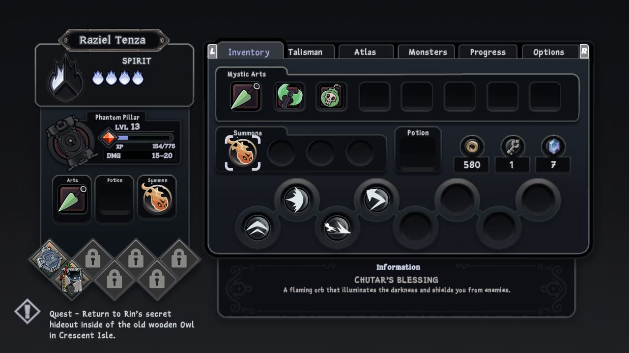 Twilight Monk features a hunting system that rewards the player for killing a set amount of each monster. When you hit milestones (for instance, 10 monsters hunted to completion), you can visit an NPC for unique rewards like permanent upgrades or extra badge slots. Including bosses, there are over 85 creatures to be hunted with several unlockable rewards along the way. It’s nothing ground-breaking, but the extra attention given to rewarding the player for engaging in combat is appreciated.