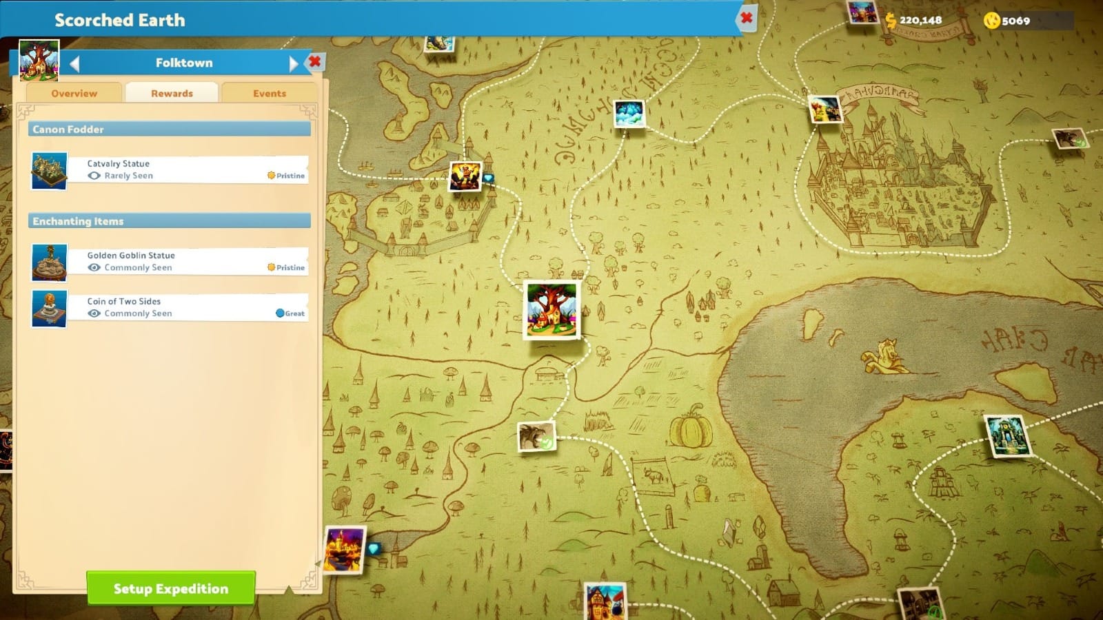 Fantasy Finds offers players a new map called the Scorched Earth, where you’ll find your typical POIs that experts can embark to so they can encounter dilemmas and locate rare goods. Of note straight after installing the pack is that you don’t get a new museum location to put all your artefacts in. Instead, you can begin the campaign on any of the existing locations, you only have to go into the Scorched Earth map on the exhibition menu screen and you’ll receive your usual quests to follow. This is the first time players have had an in-map campaign so, naturally, players were initially confused. This was admittedly a bit of a let-down as I felt like I needed to squeeze my fantasy museum alongside my already flourishing base-game ones. It's recommended that you do the campaign in Memento Mile, but you’ll have to have completed the initial star of your first museum in order to unlock it. Raven decided to take this advice and play in the first museum because that is ‘my best museum at the moment, but if you wanted to start a mega museum, I would choose Pebberly Heights.’ Keeping to a large museum map is definitely the right way to go, but it seems like myself and a lot of other players took the opportunity to test out the recent 4.00 update that gave us the finale museum, Pointy Mountains. However, in hindsight, this was probably the wrong choice.