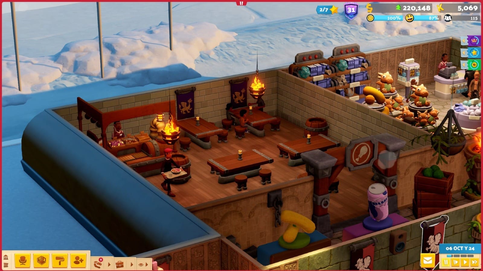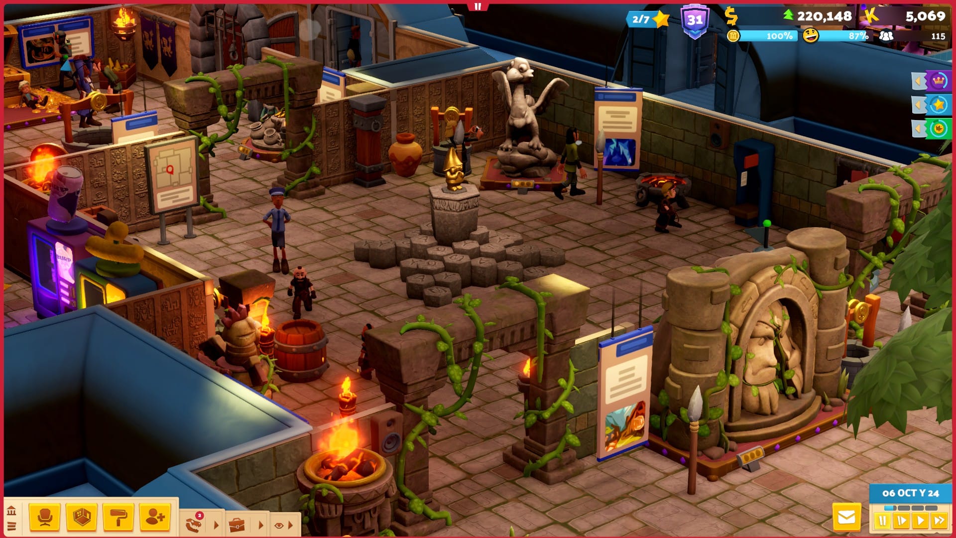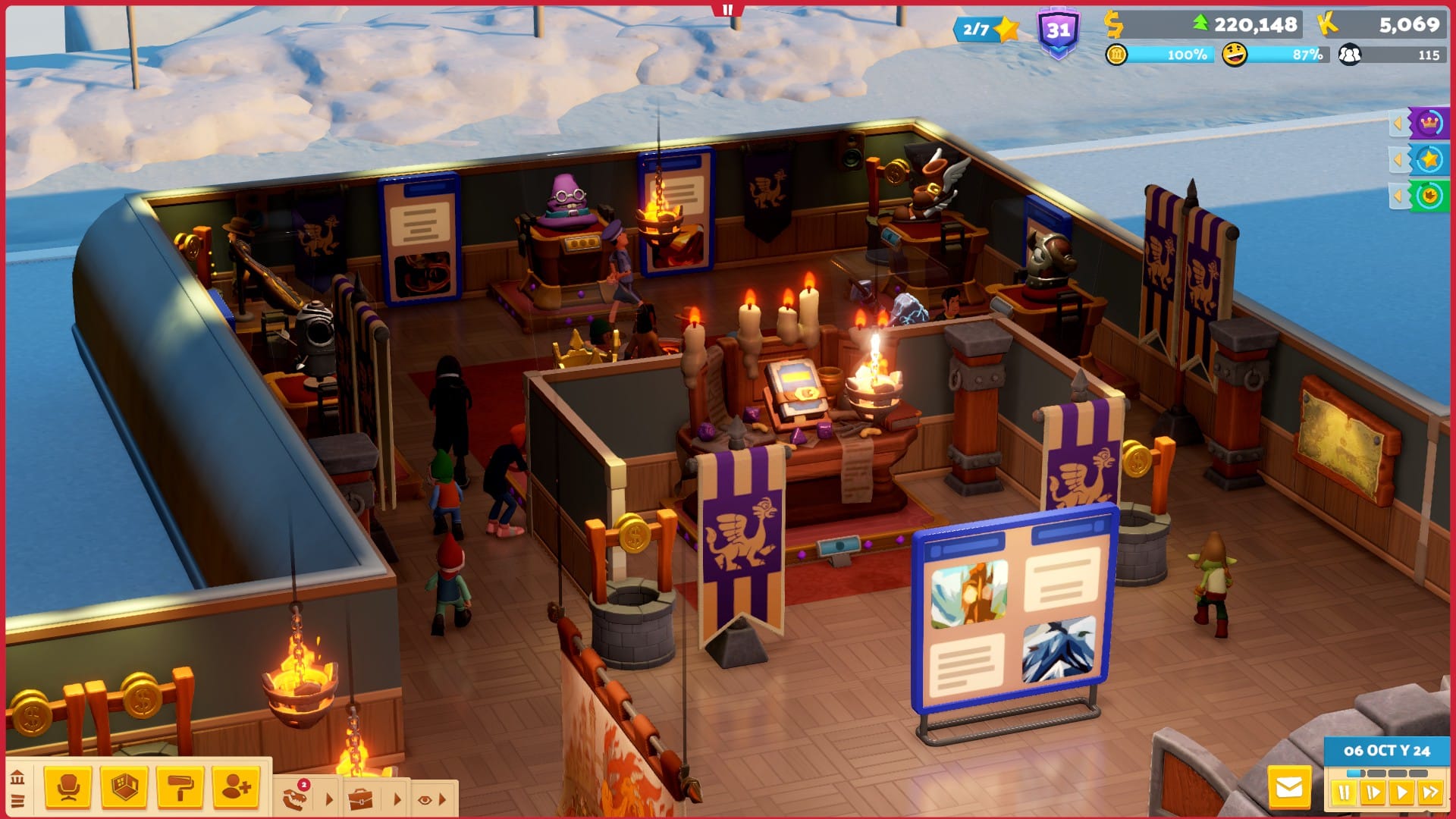 As update 4.00 came out literally alongside Fantasy Finds, it made sense for players to give the new DLC a whirl in a new location - I have an OCD thing where I want my museums to be on themeand I didn't want to mix and match just yet. However, Pointy Mountains is an extremely grindy museum, subsequently making progress slow and at times boring. The campaign is standard, with the museum focused on Frozen Finds as its theme and asking you to accommodate for the Yetis and the new guest type, Hikers. Most notable is the added challenge of beginning your campaign with no money. You need to begin by taking out a loan and quickly factoring in how much you need to pay off whilst also making a profit. This was a nice challenge and had me locked into managing my museum straight off the bat, but past this, Pointy Museums becomes a bore when you have to edge towards larger goals. This includes earning an average monthly profit of 8,000 over three months and having 150 guests in your museum. I felt like this would have been better if I had paced myself, but instead, I wanted to take in everything Fantasy Finds had to offer. So, I ended up spending 15 in-game years to get to star 2, halting my progress in Fantasy Finds as you can’t unlock the new Goblin and Dwarf guest type until then. If you’re just in this for the DLC, I’d highly recommend plonking your fantasy base on a pre-existing map to save a lot of time.