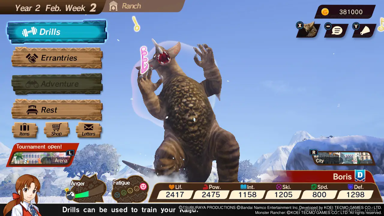 Once you have received your first Kaiju, in my case Boris, it’s up to you to raise and train that Kaiju to be the strongest and most badass Kaiju on the block. Every week you choose an action to take that will help your Kaiju develop skills and increase its stats. This is where the game might become a little stale for some as this process can become very monotonous, but, remember, this is a rancher game, not some super action-heavy RPG. We’re here to give these Kaiju the best life we can before they retire, which may only be a few years down the line for some.