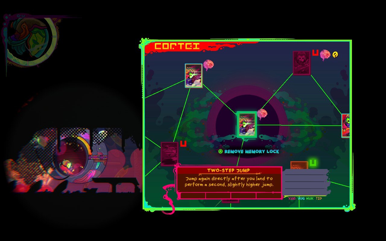 Of course, looping allows for some interesting ideas. For example, although your character loses most of their abilities at the end of each loop, that doesn’t need to be the case. By finding hidden collectibles, you can “pin” your different unlocked abilities and have them ready to go at the beginning of the next loop. I like the gist of this idea; it gives you a nonlinear approach to developing your character along with some strategic considerations about what’s best to pin. Do you go for something expensive to unlock or something convenient for the starting areas? The upgrades themselves let this idea down a bit, unfortunately. Most of the movement abilities lack straightforward utility to a surprising degree and the combat upgrades come across as superfluous due to the low difficulty of the game.
