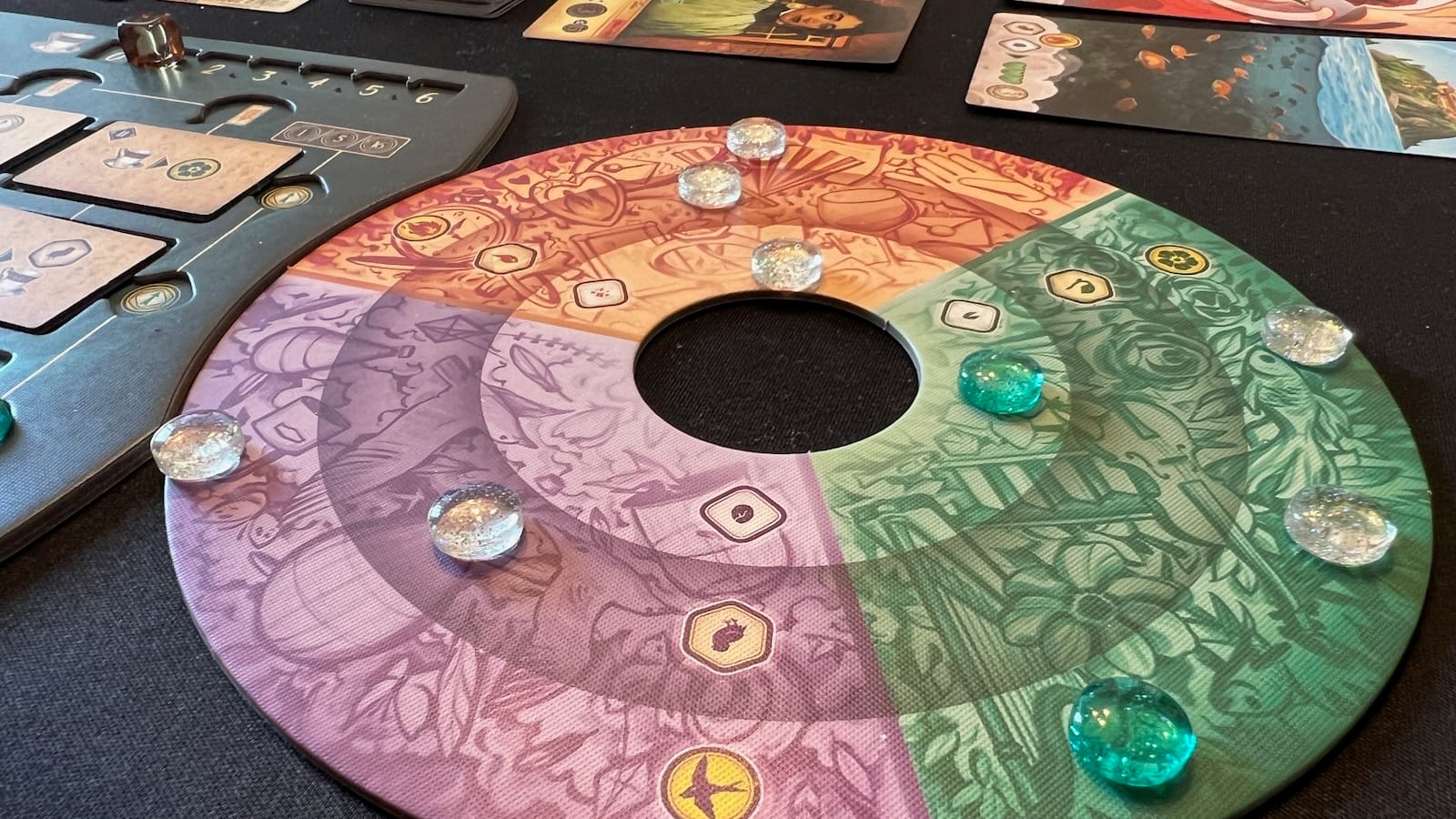 What's the point of playing a doctor if you're not helping anybody? One of the biggest facets of the game is treating patients using the various Insights you gain throughout the game. Insights come in three categories (growth, freedom, and passion)each with three different levels of power. Players will upgrade and move around small glass beads on a colored wheel to track their Insights. Players can also collect special glass beads of their player color that can be used to unlock bigger bonuses.
