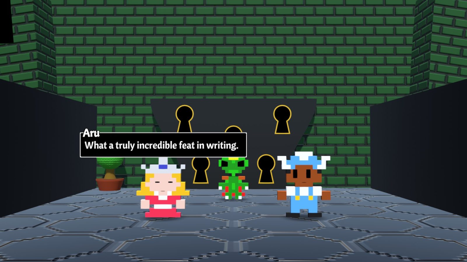 To be clear, there isn’t anything wrong with an RPG being simple, standard, or relatively generic on its own. The main thing that drags this game down is that it is also an RPG about RPGs, and as a result works hard to try to convince you of its atypical nature, going so far as making it the core theme of the narrative. By drawing attention to its atypical-ness, it amplifies just how typical it really is. Or at least it does to me, maybe I’m just obnoxious like that.