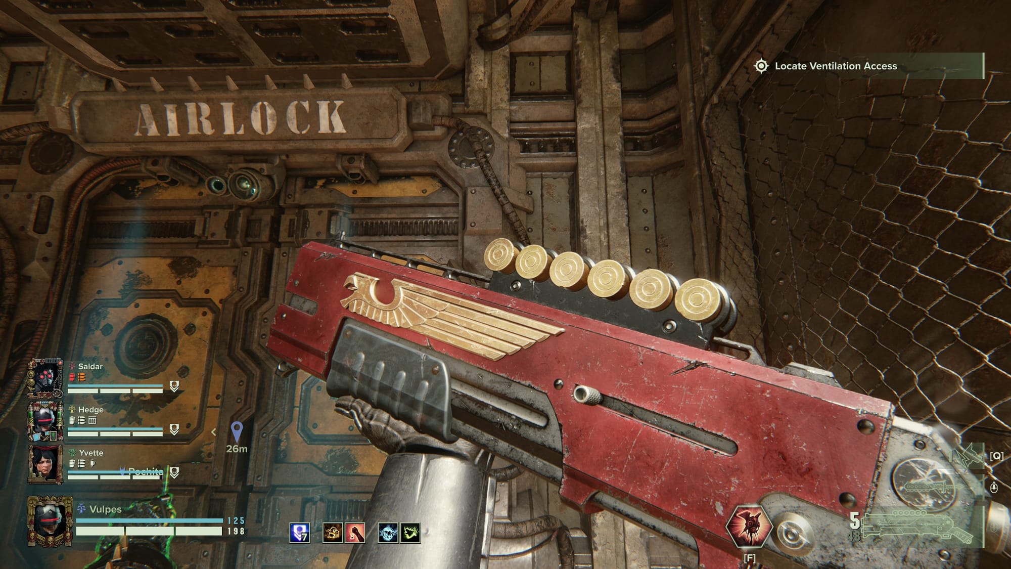 Moving down the skill tree into the combat abilities, the Arbites bring three powerful options to the table. My favorite was definitely Break The Line, a forward shove that will stagger enemies and briefly increase your damage. While the shove doesn’t do any damage on its own, the ability is on a wickedly short cooldown which more than makes up for it. If you prefer a more supportive playstyle, you might prefer the Nuncio-Aquila. This is the ability that the Arbites class starts out with, and deploys a small drone that offers up buffs to your teammates while debuffing any foes that enter its range. Finally there is the Castigators Stance, and while it’s definitely the least flashy ability, it certainly is no slouch in terms of lethality. When activating this ability, you lose the ability to sprint, but instead gain base movement speed and reduce damage taken by a whopping 80 percent. This is for those players who want to relentlessly tank damage while slaughtering their foes in an endless march. None of these abilities feel like they are an obvious pick over another, which really opened up the build diversity.