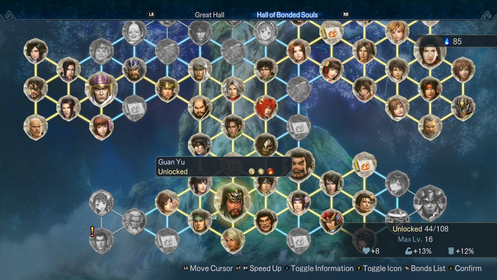 There is a fair bit to collect, though. One of the things that stood out to me most was the formation system, which provides you with benefits based on the formation you use during your run. This formation can be changed anytime, and more can be unlocked within the character web. You can also unlock an enhanced version of your character's weapon and more costumes for some of the characters. I also appreciate that each character comes with a biography because I had no idea who any of these warriors were.