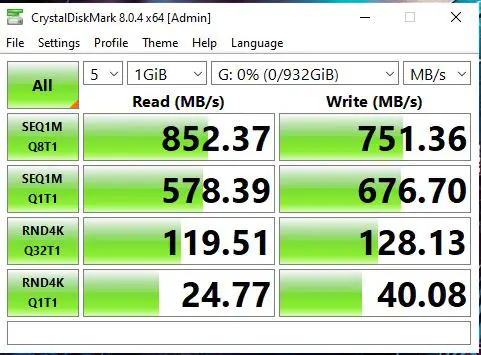 To achieve the 900MB/s read speed, you’ll need to connect this drive to a USB 3.2 Gen 2 port. That’s the 10 Gbps-capable connection sometimes denoted with a SS or Superspeed logo. When I performed this test on my system I hit speeds of 934 MB/s for read, and 835 MB/s for write, as you can see below — above the 900MB/s mark advertised on the box. If you are still rocking a USB 3.2 Gen 1 port you can expect that you’ll still cap out at an impressive 500MB/s. The Xbox Series X/S and PlayStation 5 both sport Gen 2 ports (you’ll want to plug into the back of the PS5 — the front ports cap out at 480MB/s), so you won’t have to worry about speeds there, but the Xbox One and PlayStation 4 are both USB 3.0, so that 500MB/s is as good as it’s going to get. You can thank the IEEE folks for making USB as confusing as humanly possible.
