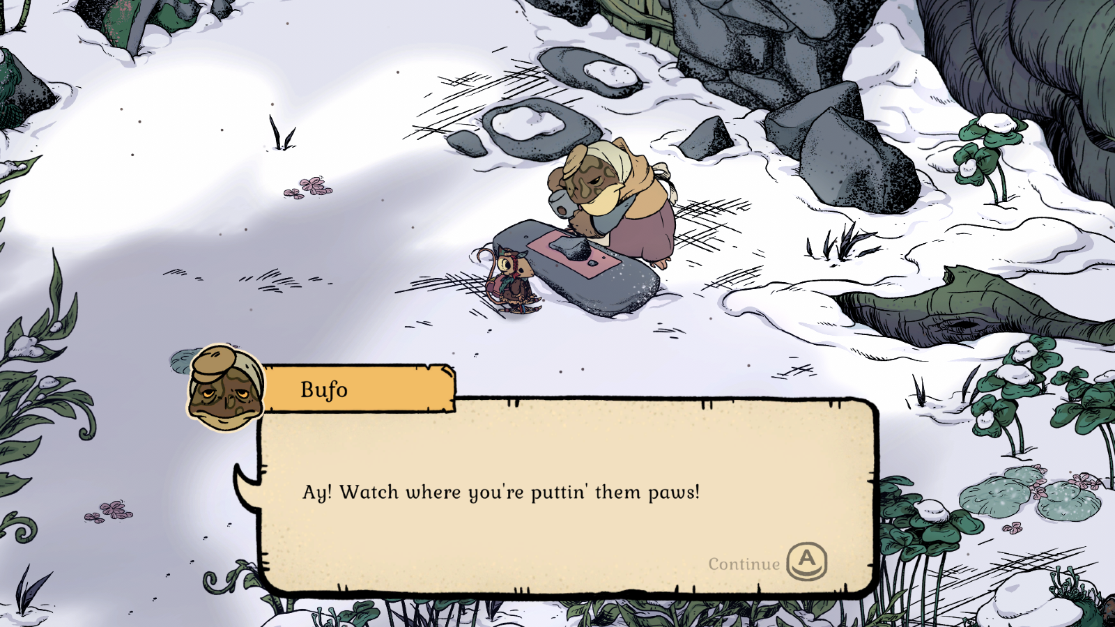 Winter Burrow is undoubtedly sweet and queues a lot of awes when you see your mouse wrapped up in his woolly apparel amidst scenery that looks like it comes out of a fairytale book. However, Winter Burrow likes to tread the line of tragedy rather than fully give into the whimsy, which provides a nice balance of realism and creates stakes for our little mouse. Right at the beginning of the game, we learn that our little mouse moved to the city from the forest with his parents. To provide for the family and to make ends meet, his parents end up working themselves to death, so he decides to travel back to his old home to start life anew. Ouch. And don’t worry, there’s plenty more tragic story beats coming up so prepare for a bit of a tearjerker. This was one of my favourite parts of this game and it’s a very different approach to take compared to other cozy games.
