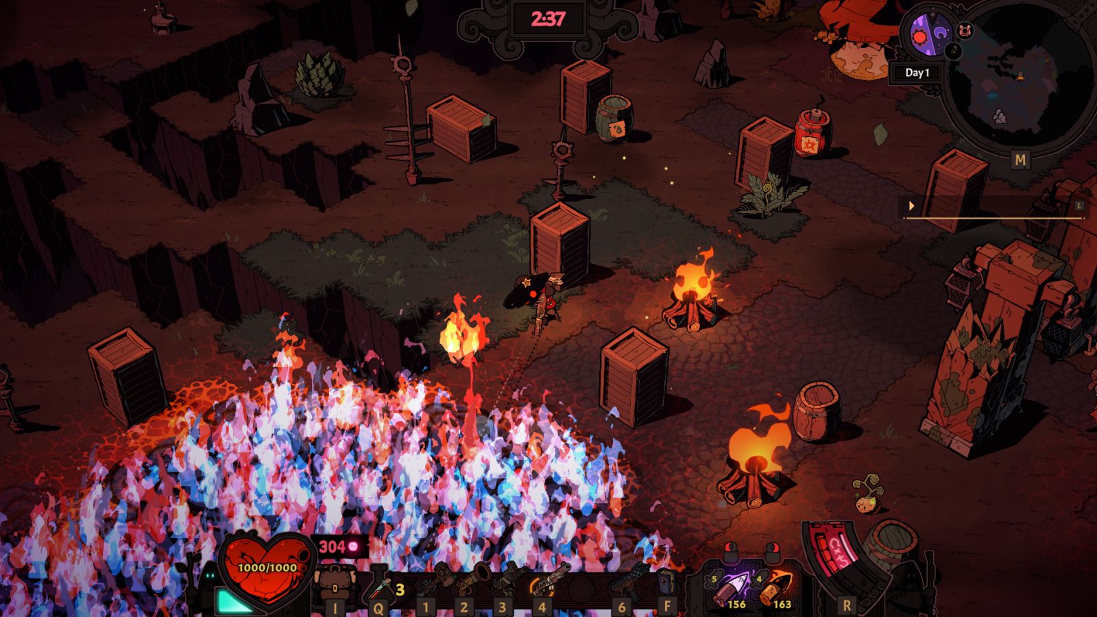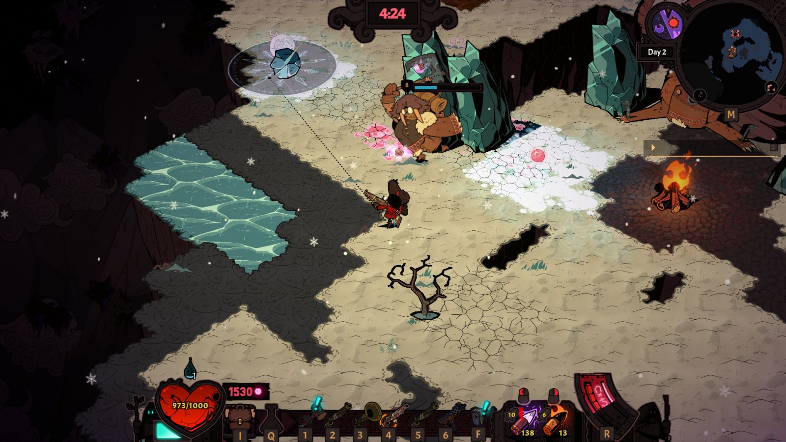Exploring the wonder-ridden world that the devs have carefully engineered with procedural generation is invigorating until you realize that you’ve overstayed your welcome, the clock is at one minute ‘til midnight, and you’re deep into the map. Soon, chaos will spew into the world. You might think your most pertinent objective would become: get the hell out of dodge. However, you might want to use the chaos of the apocalypse to your advantage. The beings of chaos are less creatures and more forces of nature. They destroy EVERYTHING in sight with their corrosive energy, even the ground will deteriorate. At one point, when I exited their attack range, they switched targets and started attacking a tree. They aren’t picky, just hostile.