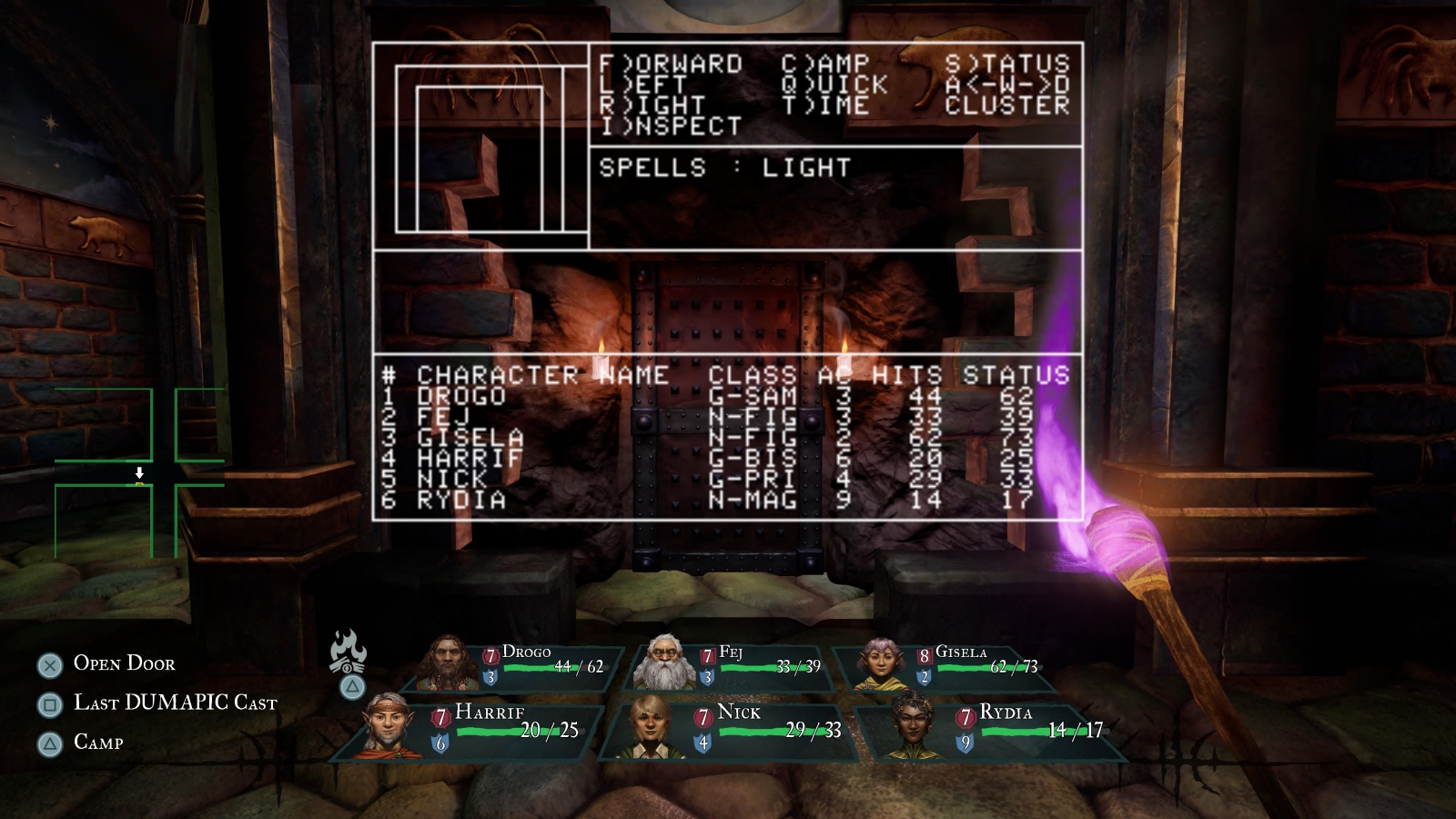 On the PS5, clicking the touchpad lets you view the remaster, the remaster with an embedded pop-up of the original, or the Apple II graphics. I found the contrast endlessly entertaining. From a collection of nouns and Apple II doodles, the developer Digital Eclipse has whipped up some cool art reminiscent of ’80s fantasy. My favorite enemy is a mage that waves his staff around like a kid at Dave & Busters and cries, “Aha!” in his best Ren Faire voice. It’s all so campy and utterly charming. Like most early RPGs, Wizardry wanted to translate 1st or 2nd edition D&D into a computer game, and the style reflects that.