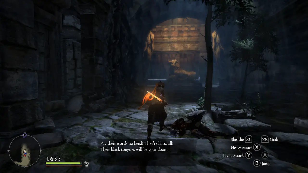 Gransys may not be the most original setting, but I still found myself getting drawn in. The world is strewn with forts and caverns that all seem real and lived-in, like settings for stories that you weren’t a part of. Bandits gather at their camp, lizardfolk sun themselves on rocks near the water, and harpies roost in trees surrounded by the bones and rusted armor of their past victims. Meanwhile, laborers carry supplies from camp to camp on the roads you travel and nuns shelter in an abbey deep in a cursed forest. It’s nothing as complex as the ecosystem in Monster Hunter World or any immersive sim with different systems interacting with each other, but everything has its place in the world being built.