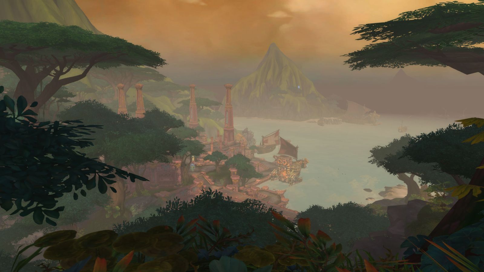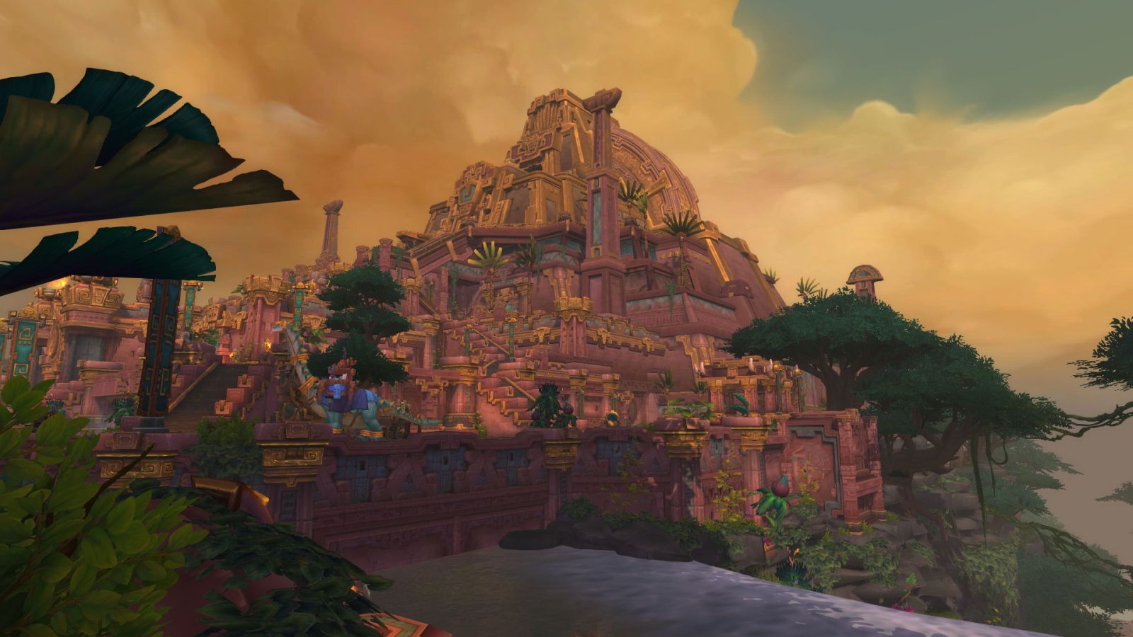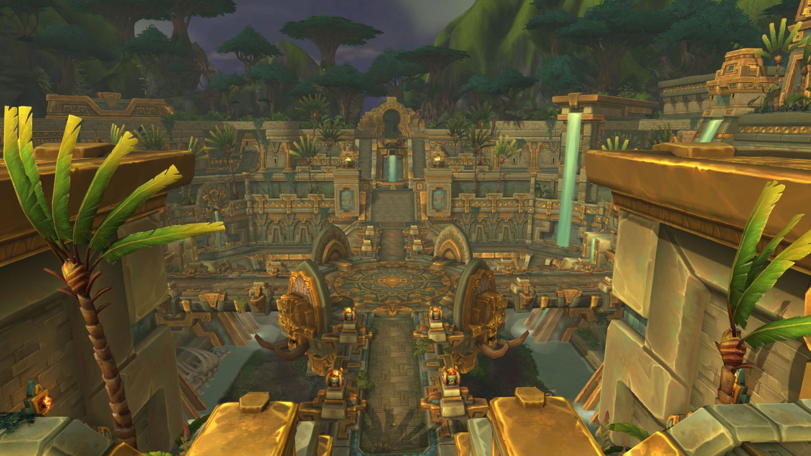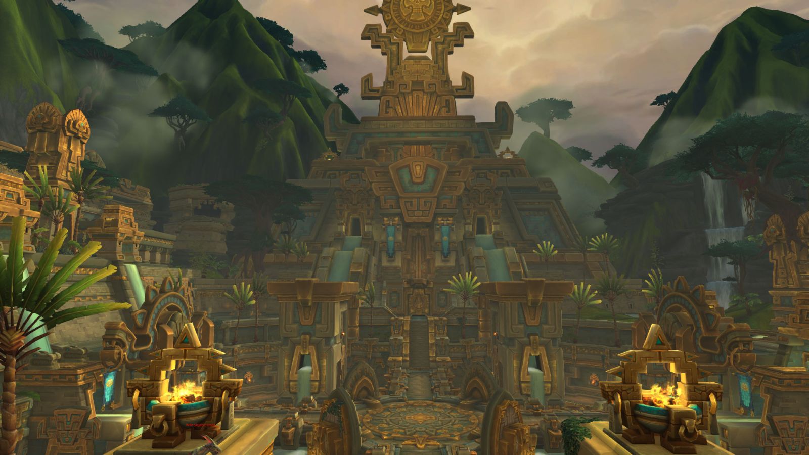 I chose to start in Zuldazar, which includes the massive, sprawling city of Dazar’Alor and the gorgeous jungles surrounding it. The city is a pain in the butt to navigate, but visually stunning. Blizzard outdid themselves with our new home capital. It borrows the look of Mayan architecture with a huge stepped pyramid at the center where King Rastakhan resides. New creature models, breathtaking waterfalls, a beach side area, and small villages make up what feels like a living, breathing zone. While there are plenty of basic side quests, the main story here is to uncover a coup against the King, led by (shocker!) none other than Zul the Prophet.