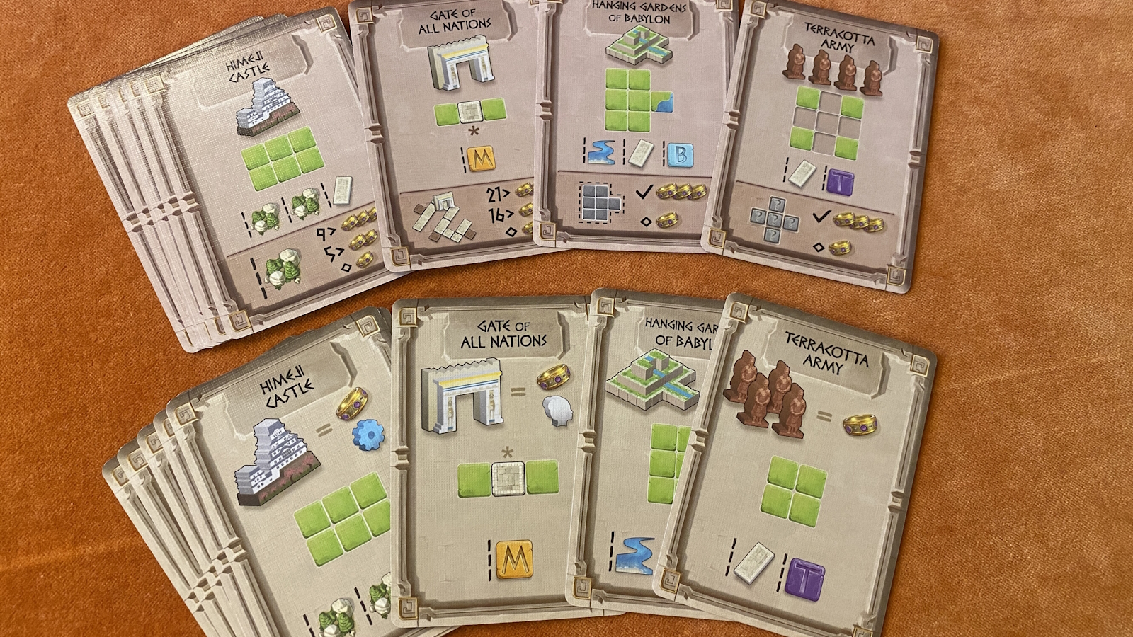 This expansion also comes with an additional gameplay option called Mundo Mode. Each of the new monuments has a Mundo card variant. These are very similar to the normal monument card, except that they have an additional scoring opportunity on them. For example, Himeji Castle will score you more points at the end of the game for being connected to more natural preserves around the map. The Gate of All Nations wants you to have a very long road that runs through it. These are all fun extra goals to work towards when planning your city. I kind of wish there were Mundo cards added for all of the base game monuments as well to add even more variety.