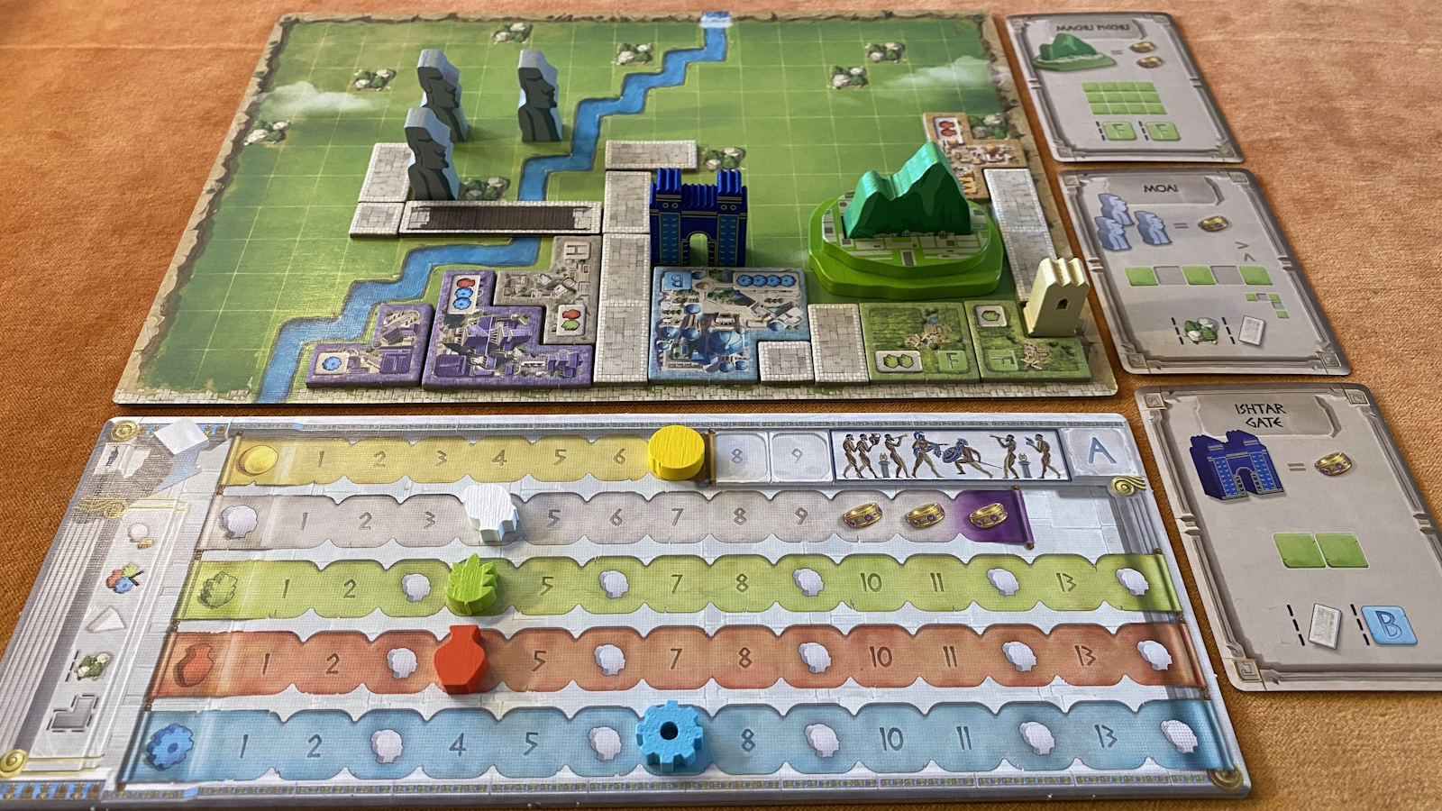 One negative with large player counts, however, is that sometimes you can run out of monuments half way through the game. While this doesn’t make the game fall apart mechanically, it does seem weird to be playing half of a game about World Wonders and not having any available to build.