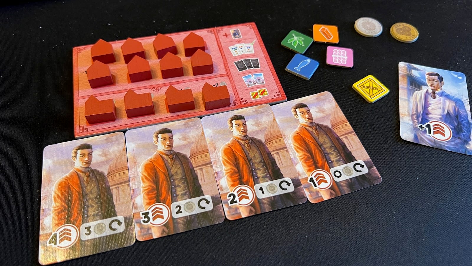 On the production side, the updated artwork was a welcome addition. All of the iconography throughout the game is well designed, and once you are familiar with each location, everything you need is printed on the board, streamlining gameplay. The main play area is separated into two boards rather than many different boards like its predecessor, and can be laid out depending on your table space. These boards hold all the locations and cards needed in the game. One of my biggest gripes, however, comes in the warping of the boards after our first play. The thinner, warped cardboard and light components mean a table bump will send things sliding. The player boards are simple, utilitarian, and provide a reminder of how to recruit foreign agents. As they store all of your shops and trade house tokens, a dual-layer would help organize the components better. The resource and money tokens are also a thinner cardboard, but are vibrant and fit the small box aesthetic. The rule book does a excellent job of outlining gameplay with included examples and descriptions of each location and technology card. A more robust back page reminder sheet would have been nice, but overall, a decent manual.